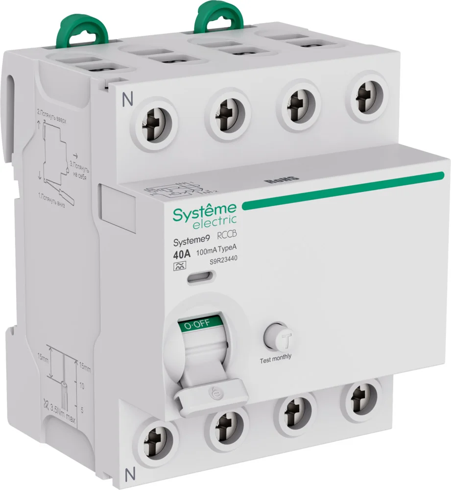 Выключатель дифференциального тока (ВДТ) или устройство защитного отключения (УЗО) S9R, серии Systeme9, Systeme Electric, 2-полюсный, номинальный ток 40 А, ток утечки = 100 мА, тип AC. Соответствует требованиям стандартов ГОСТ IEC 61008-1 и ГОСТ IEC 60947-2. Применяется в электрических сетях напряжением 230 В. Предназначен для защиты людей от токов утечки при прямом (10 и 30мА) […]