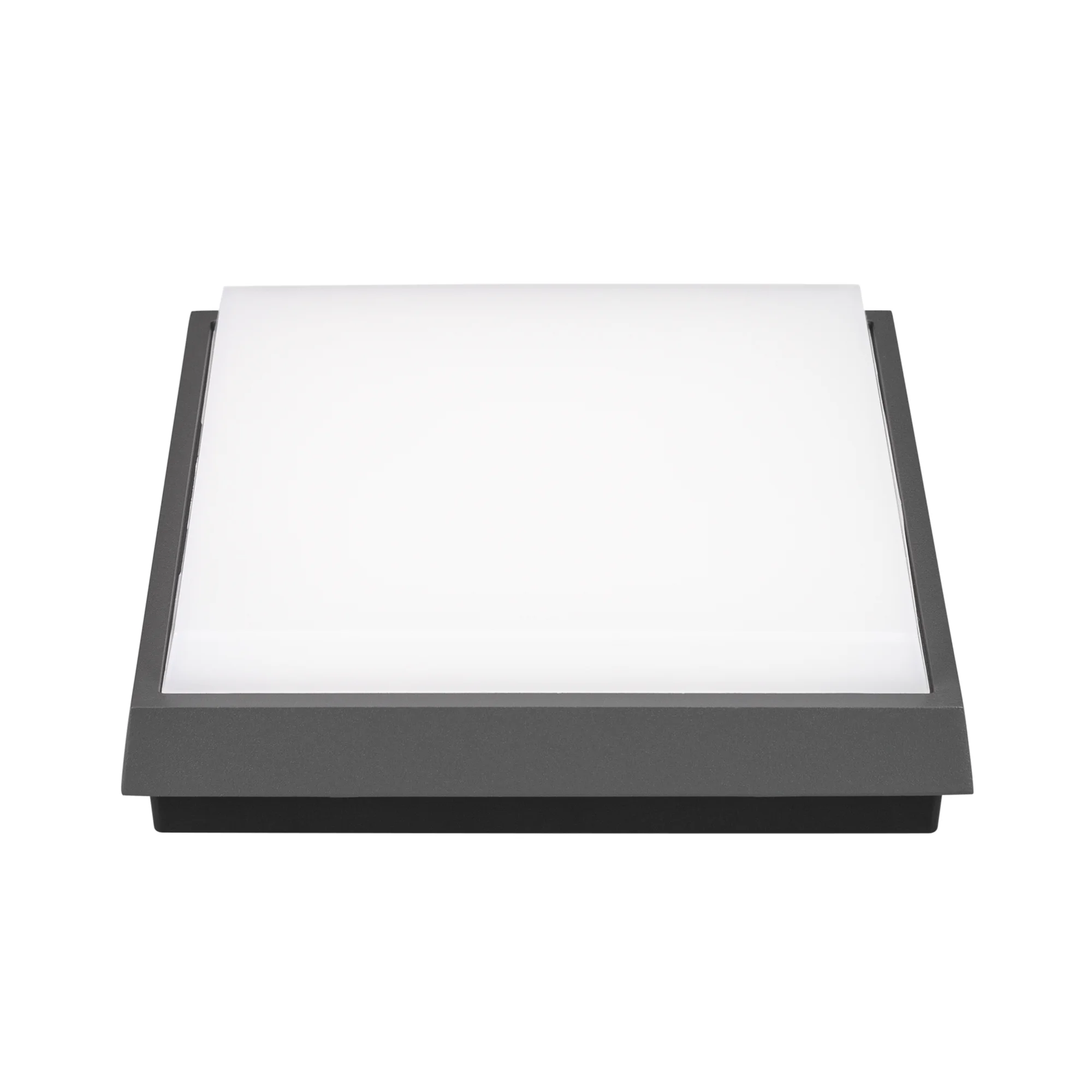 Накладной светильник 10Вт, серый алюминиевый корпус, матовый рассеиватель из поликарбоната. Цвет ТЕПЛЫЙ БЕЛЫЙ 3000K, св.поток 790лм, CRI(Ra)>80, угол 110°. Размер 175x175x45мм. IP54. Питание AC220-240V, 10Вт, встроенный драйвер.