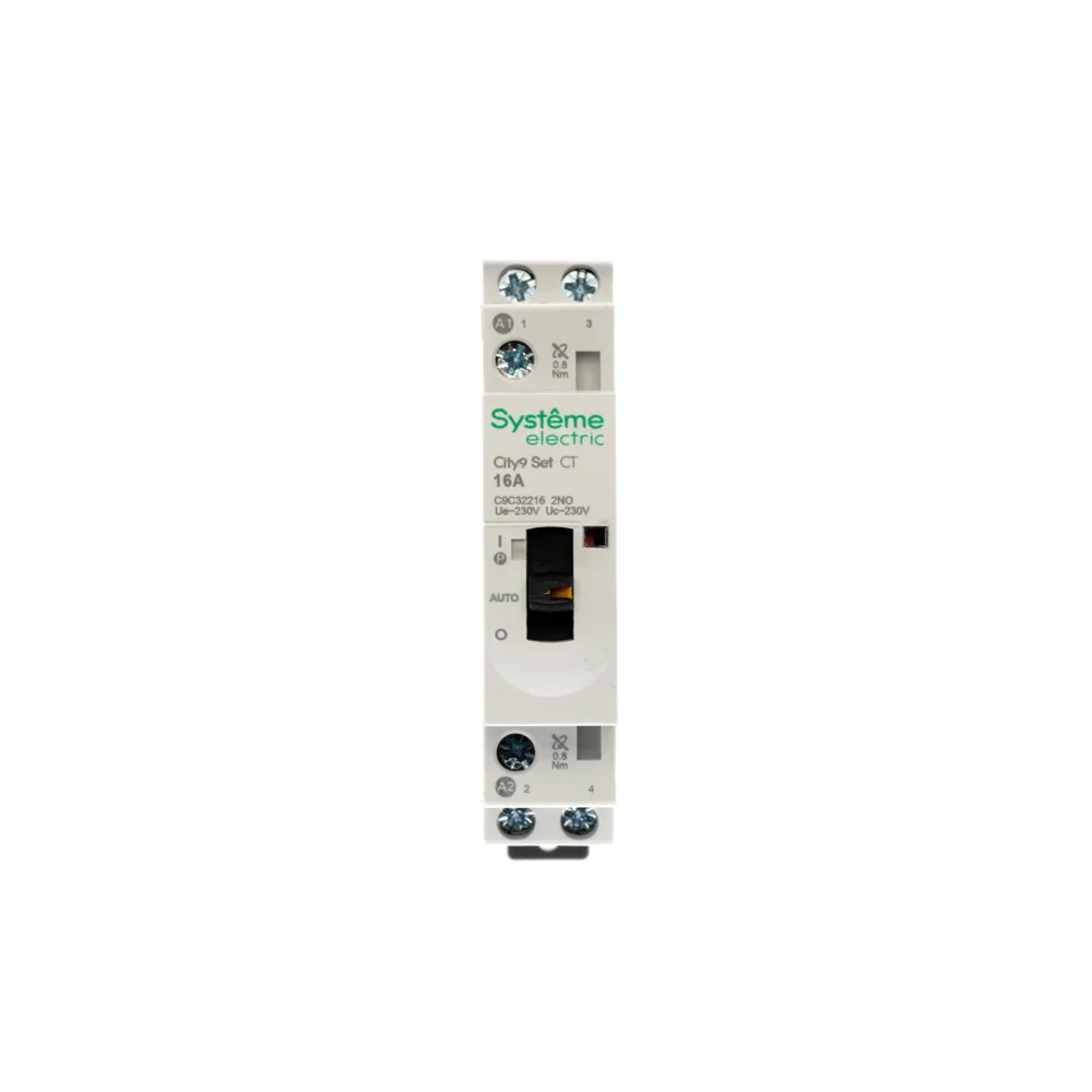 Контактор CT серии City9 Set Systeme Electric на номинальный ток 16 А (AC7a / AC7b), 2НО, номинальное напряжение силовой цепи — 230В, напряжение цепи управления — 230В, ширина 18 мм. — В сочетании с автоматическими выключателями или АВДТ обеспечивают дистанционное управление в однофазных и трехфазных цепях переменного тока (освещение, отопление, вентиляция, жалюзи и т.п.) — […]