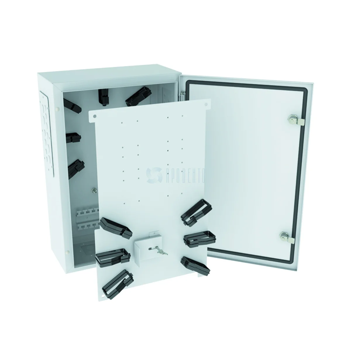 Шкаф настенный для волоконно оптической линии связи используется для распределения оптоволоконных кабелей. Выполнен на базе корпуса для автоматизации MES. Подходит для экстремальных условий. Панели кабельного ввода расположены по бокам и снизу шкафа. Монтажная панель выполнена с кабельными организаторами и кабельной шиной. Присутствует монтажная панель для крепления 4 сплайс-кассет и 4 патч-кабелей. Степень защиты IP 66.