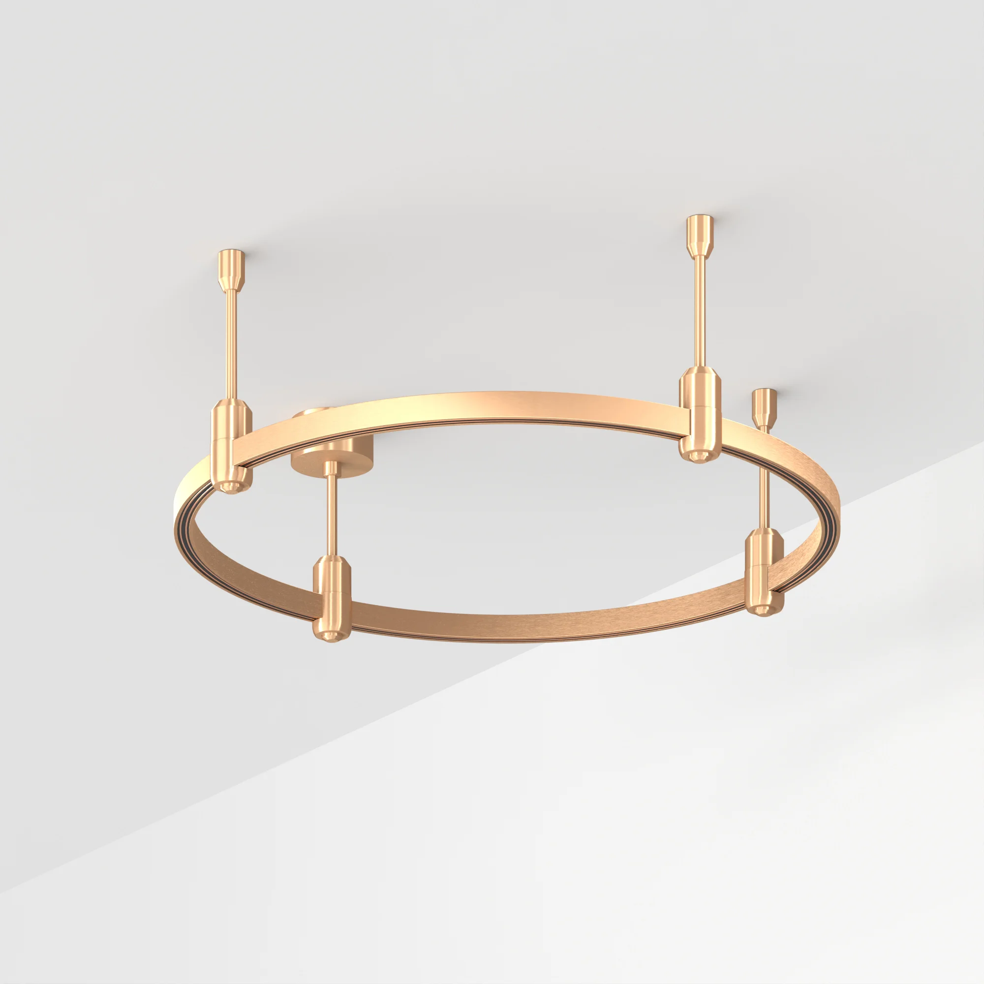 Подвесная конструкция APRIORI, форма круг. В комплекте треки с аксессуарами и жесткими подвесами длиной 400мм. DC48V. Материал алюминий, цвет светлое золото. Размер: диаметр 1200мм, высота 22мм. Светильники и источники питания приобретаются отдельно.