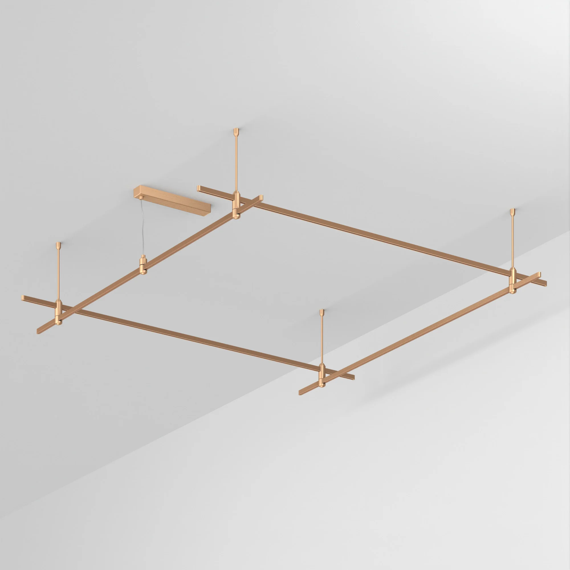 Подвесная конструкция APRIORI, форма квадрат. В комплекте треки с аксессуарами и жесткими подвесами длиной 400мм. DC48V. Материал алюминий, цвет светлое золото. Размер ДxШxВ: 2000x2000x22мм. Светильники и источники питания приобретаются отдельно.