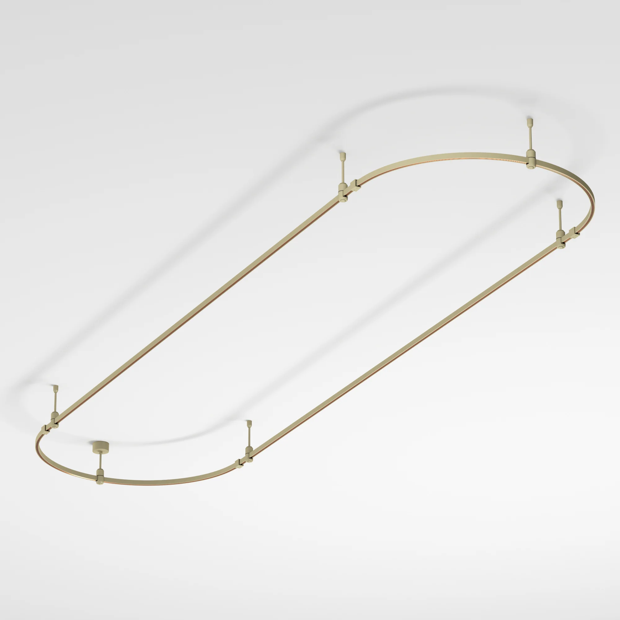 Подвесная конструкция APRIORI, форма овал. В комплекте треки с аксессуарами и жесткими подвесами длиной 800мм. DC48V. Материал алюминий, цвет светлое золото. Размер ДxШxВ: 4000x1000x22мм. Светильники и источники питания приобретаются отдельно.