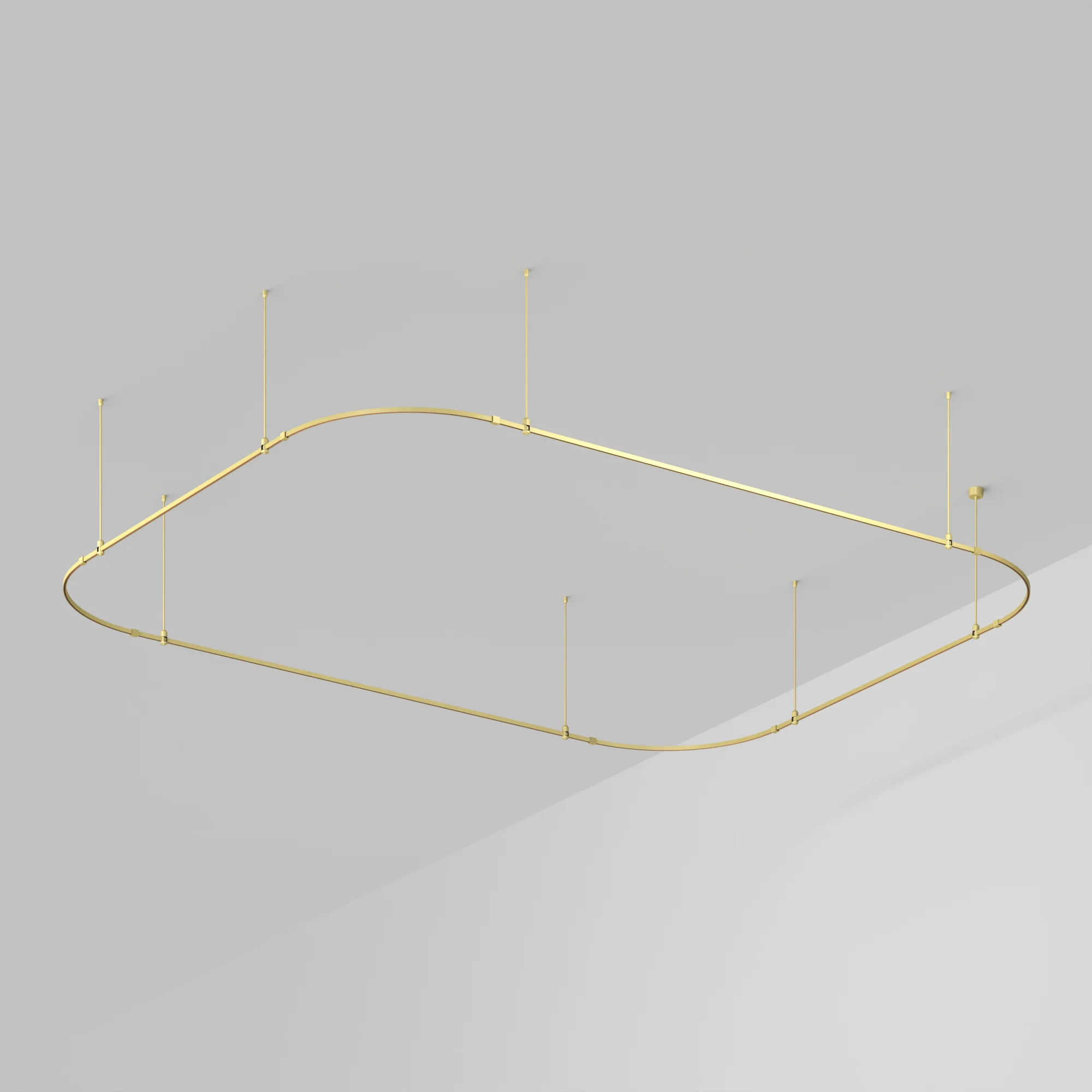 Подвесная конструкция APRIORI, форма закруглённый прямоугольник. В комплекте треки с аксессуарами и жесткими подвесами длиной 800мм. DC48V. Материал алюминий, цвет светлое золото. Размер ДxШxВ: 4500x3500x22мм. Светильники и источники питания приобретаются отдельно.