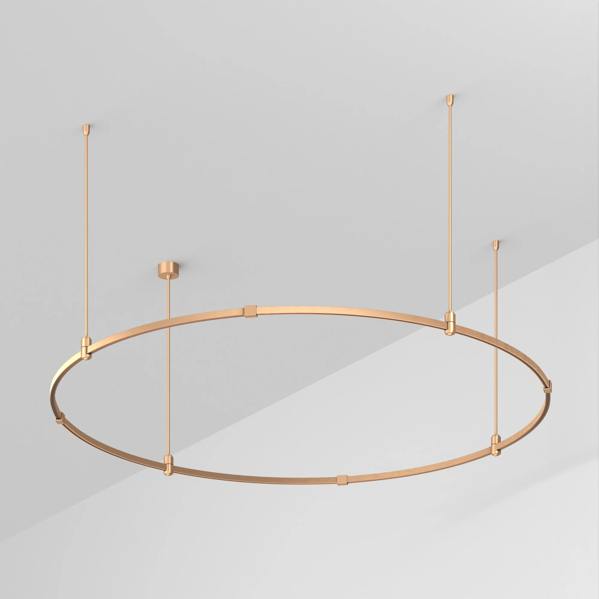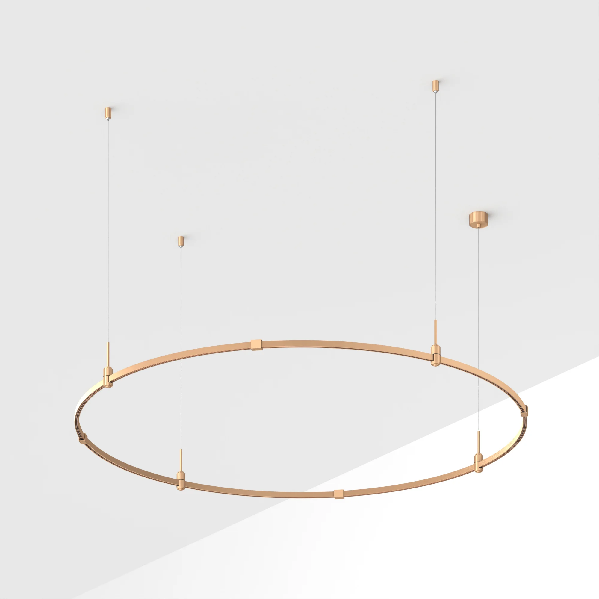 Подвесная конструкция APRIORI, форма круг. В комплекте треки с аксессуарами и жесткими подвесами длиной 200мм. DC48V. Материал алюминий, цвет светлое золото. Размер: диаметр 800мм, высота 22мм. Светильники и источники питания приобретаются отдельно.