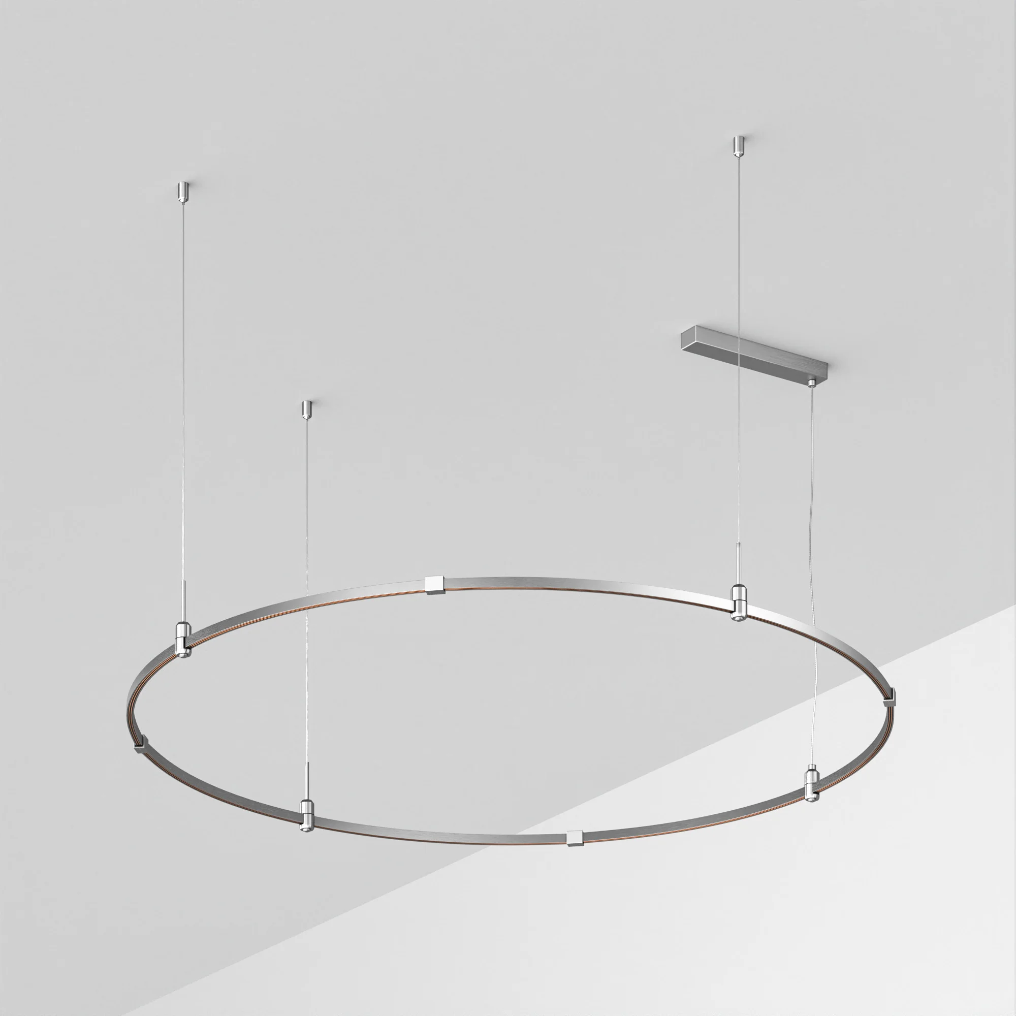 Подвесная конструкция APRIORI, форма круг. В комплекте треки с аксессуарами и гибкими подвесами. DC48V. Материал алюминий, цвет титан. Размер: диаметр 1500мм, высота 22мм. Светильники и источники питания приобретаются отдельно.