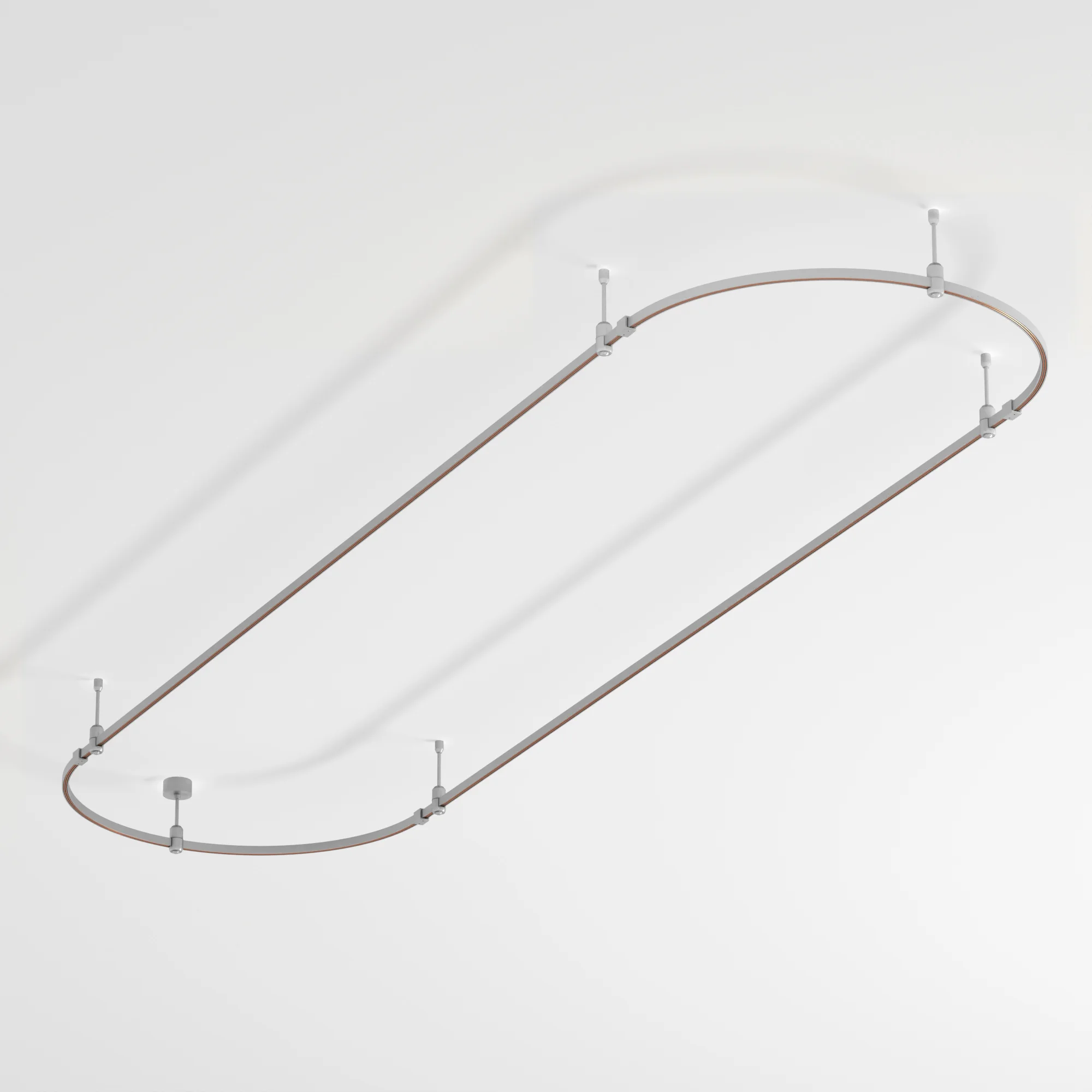 Подвесная конструкция APRIORI, форма овал. В комплекте треки с аксессуарами и гибкими подвесами. DC48V. Материал алюминий, цвет титан. Размер ДxШxВ: 3000x1000x22мм. Светильники и источники питания приобретаются отдельно.