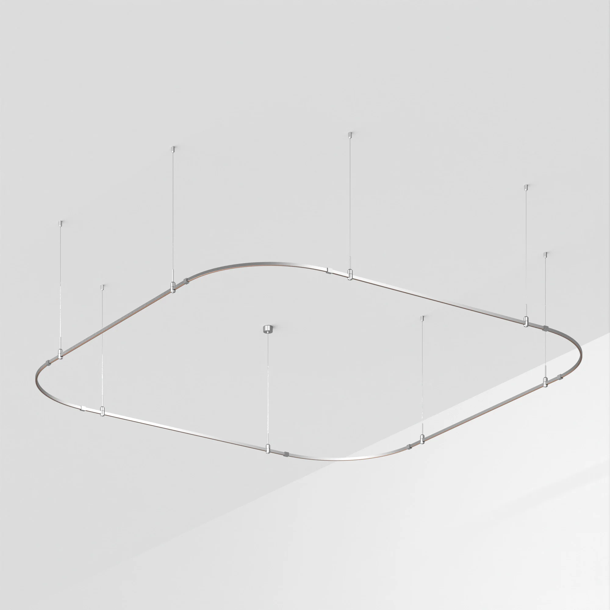 Подвесная конструкция APRIORI, форма закруглённый квадрат. В комплекте треки с аксессуарами и гибкими подвесами. DC48V. Материал алюминий, цвет титан. Размер ДxШxВ: 3500x3500x22мм. Светильники и источники питания приобретаются отдельно.