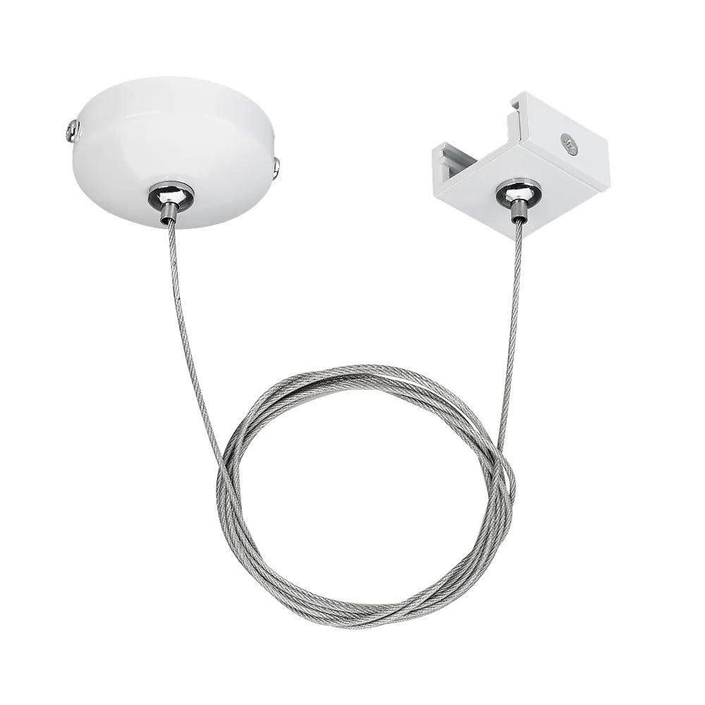 Тросовый подвес с металлической чашкой Ø50×19мм для трехфазных треков. Длина троса 2 м. Цвет белый. Выдерживает вес максимум 6 кг. При использовании с треками и аксессуарами другой серии возможно отличие по цвету.