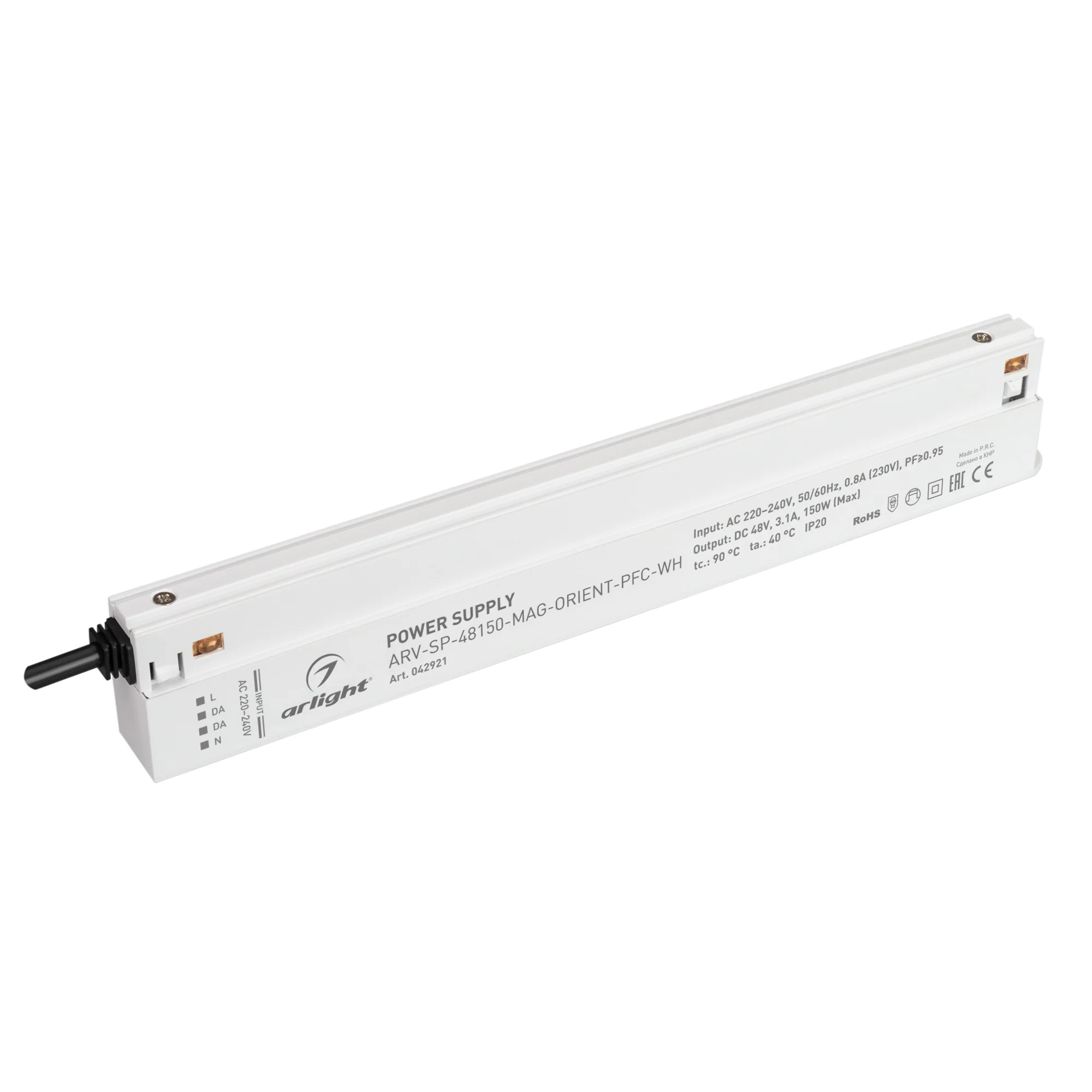 Источник напряжения с гальванической развязкой для для магнитной системы. Входное напряжение 220-240 VAC. Выходные параметры: 48 В, 3.1 А, 150 Вт. Встроенный PFC >0,95. Сверхтонкий пластиковый корпус IP20. Рабочая температура -25…+40C°. Габаритные размеры длина 268 мм, ширина 22 мм, высота 44 мм. Гарантийный срок 5 лет.