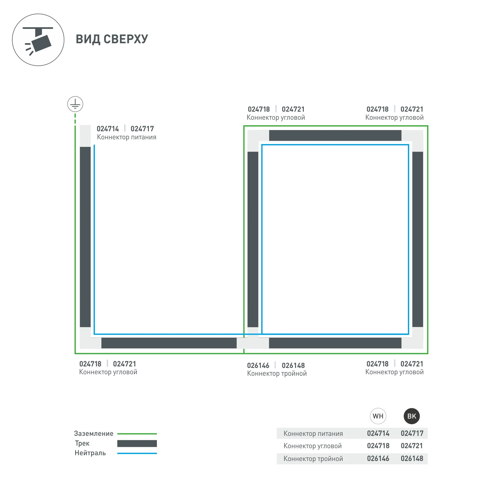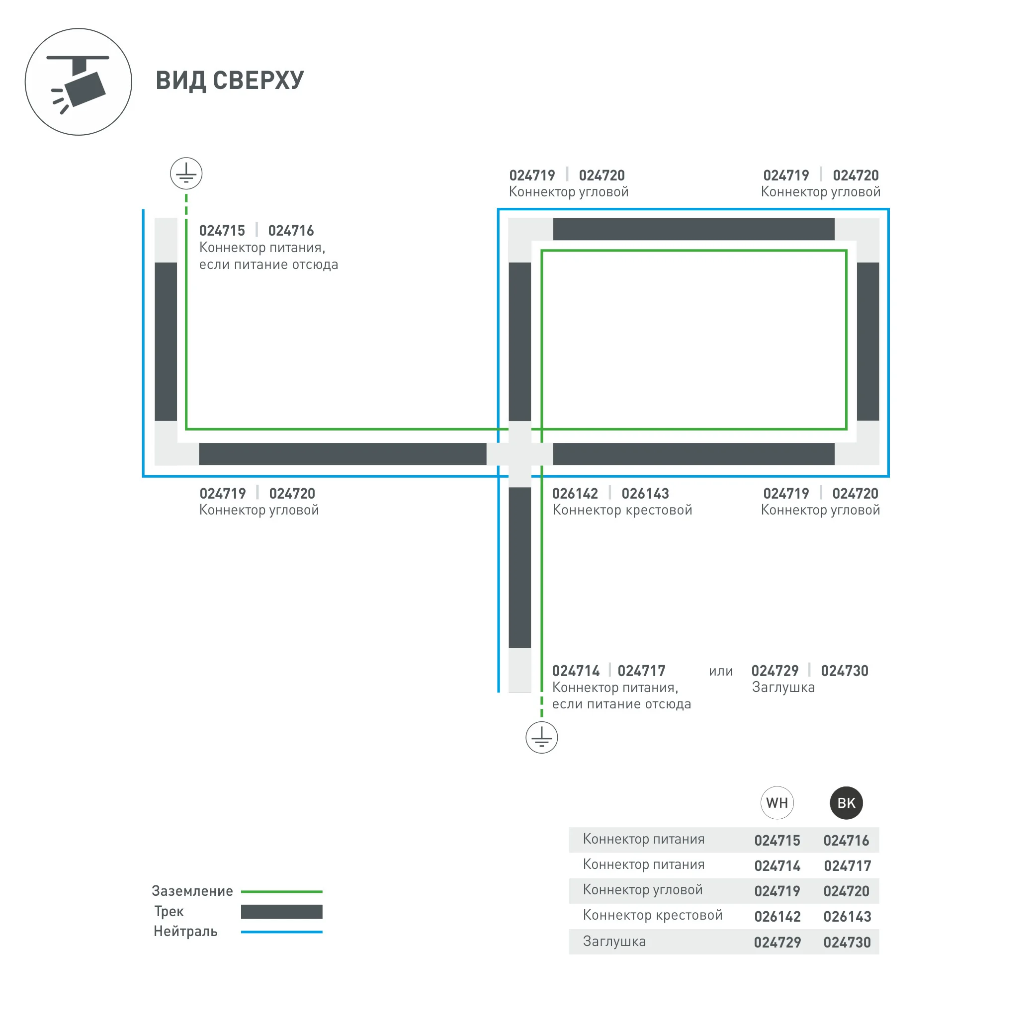 Угловой коннектор 90 градусов, питание по внешней стороне. Цвет черный. 99х99х33 мм с контактами, 66х66х33 мм без контактов. При использовании с треками и аксессуарами другой серии возможно отличие по цвету.