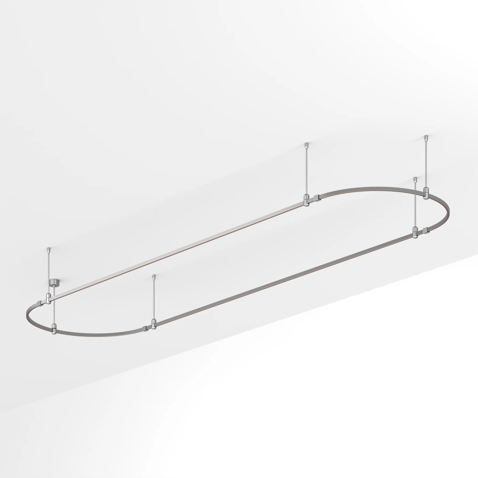 Подвесная конструкция APRIORI, форма овал. В комплекте треки с аксессуарами и жесткими подвесами длиной 200мм. DC48V. Материал алюминий, цвет титан. Размер ДxШxВ: 4000x1000x22мм. Светильники и источники питания приобретаются отдельно.