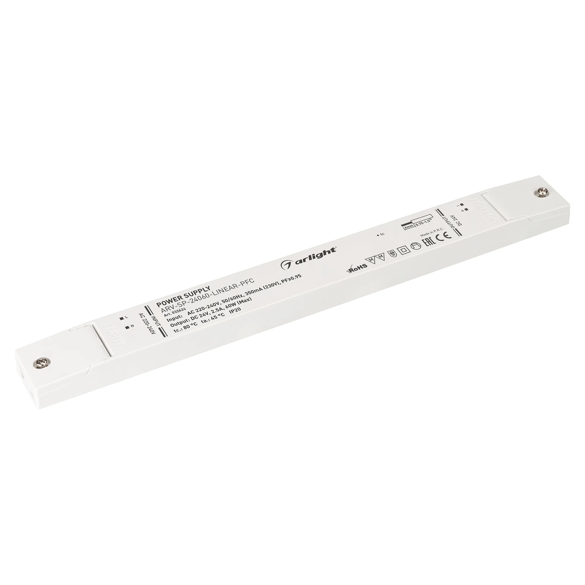 Источник напряжения с гальванической развязкой для светодиодных изделий. Входное напряжение 220-240 VAC. Выходные параметры: 24 В, 2.5 А, 60 Вт. Встроенный PFC >0.95. Тонкий пластиковый корпус IP 20. Габаритные размеры длина 300 мм, ширина 30 мм, высота 16 мм. Гарантийный срок 5 лет.