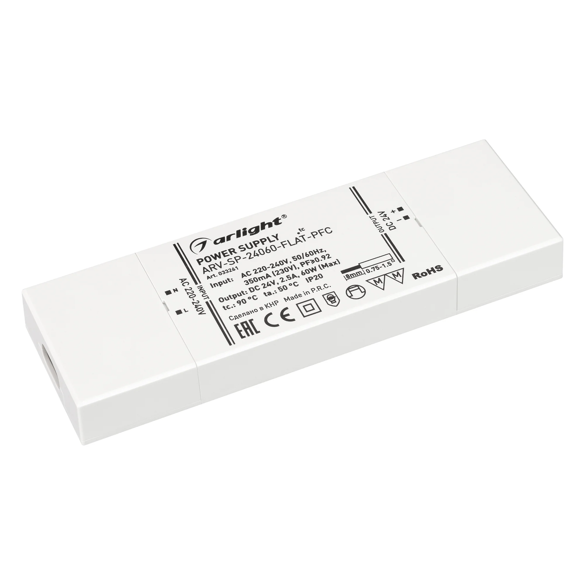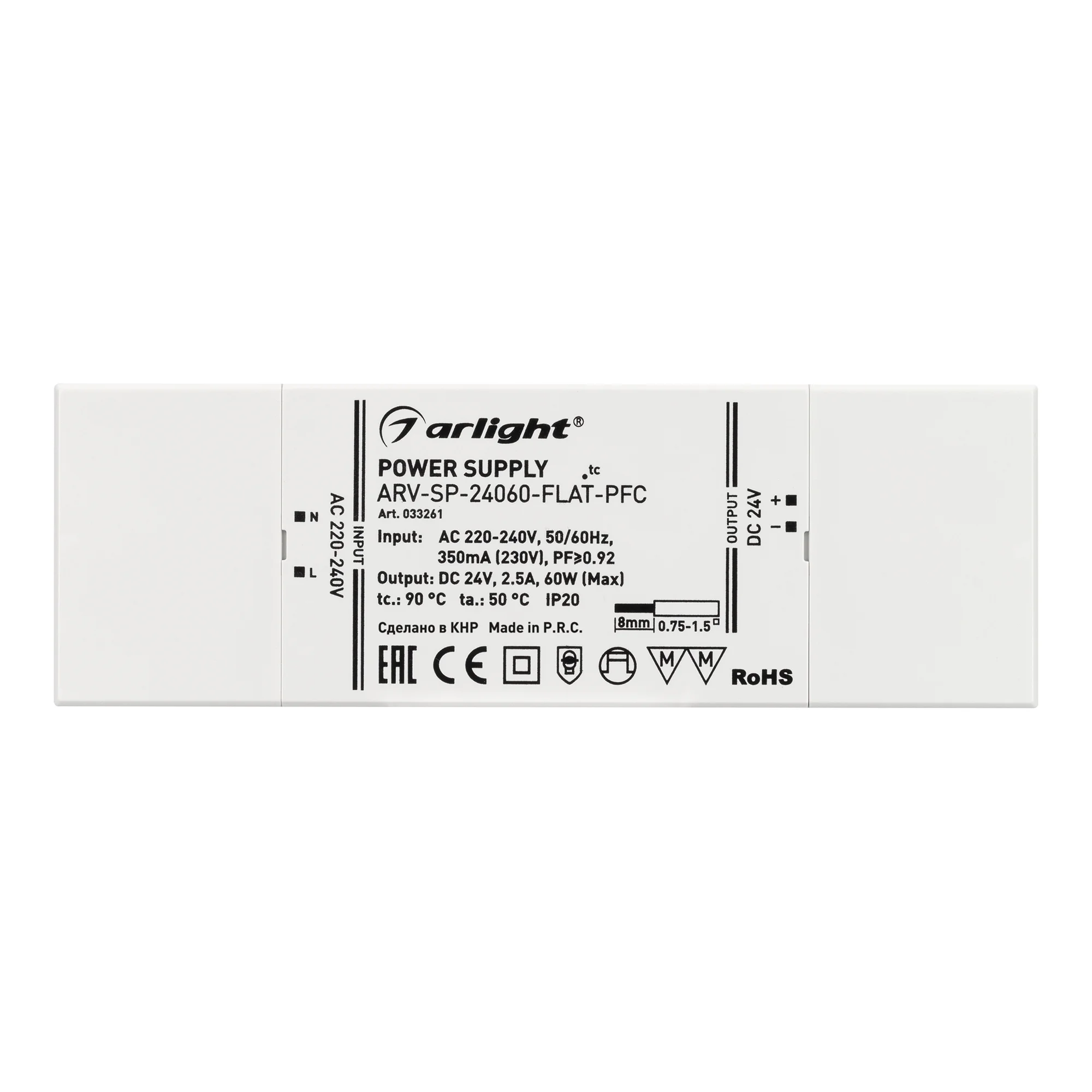 Источник напряжения с гальванической развязкой для светодиодных изделий. Входное напряжение 220-240 VAC. Выходные параметры: 24 В, 2.5 А, 60 Вт. Встроенный PFC >0.95. Сверхтонкий пластиковый корпус IP20. Габаритные размеры длина 170 мм, ширина 57 мм, высота 18 мм. Гарантийный срок 5 лет.