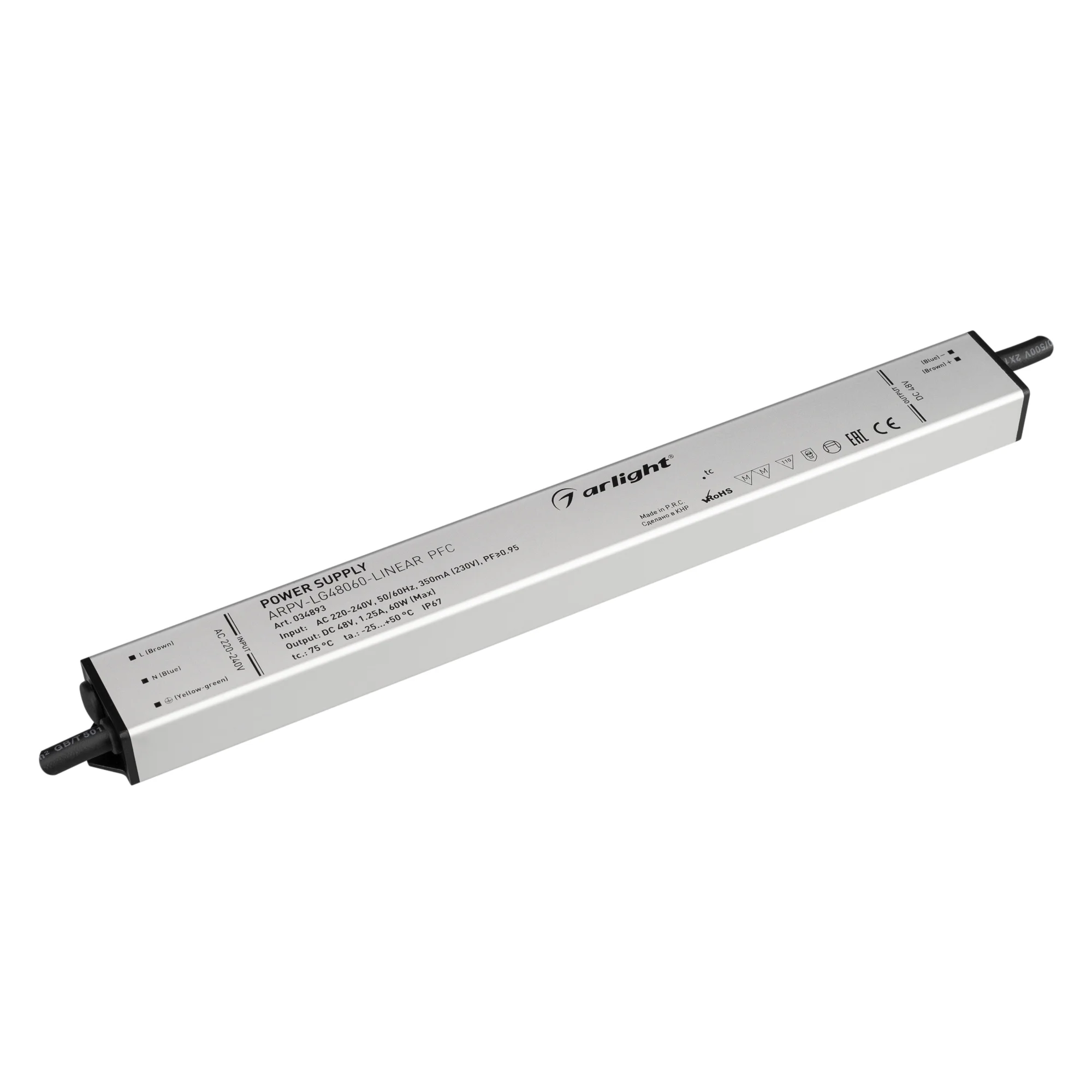 Источник напряжения с гальванической развязкой для светодиодных изделий. Входное напряжение 220-240 VAC. Выходные параметры: 48 В, 1.25 А, 60 Вт. Встроенный PFC >0.95. Тонкий металлический корпус IP67. Вход: 220-240VAC. Выход: 48VDC. Размер 290х30х21 mm.. Совместимость со стандартом EMC. Гарантия 5 лет. Допускается использование только внутри помещений.