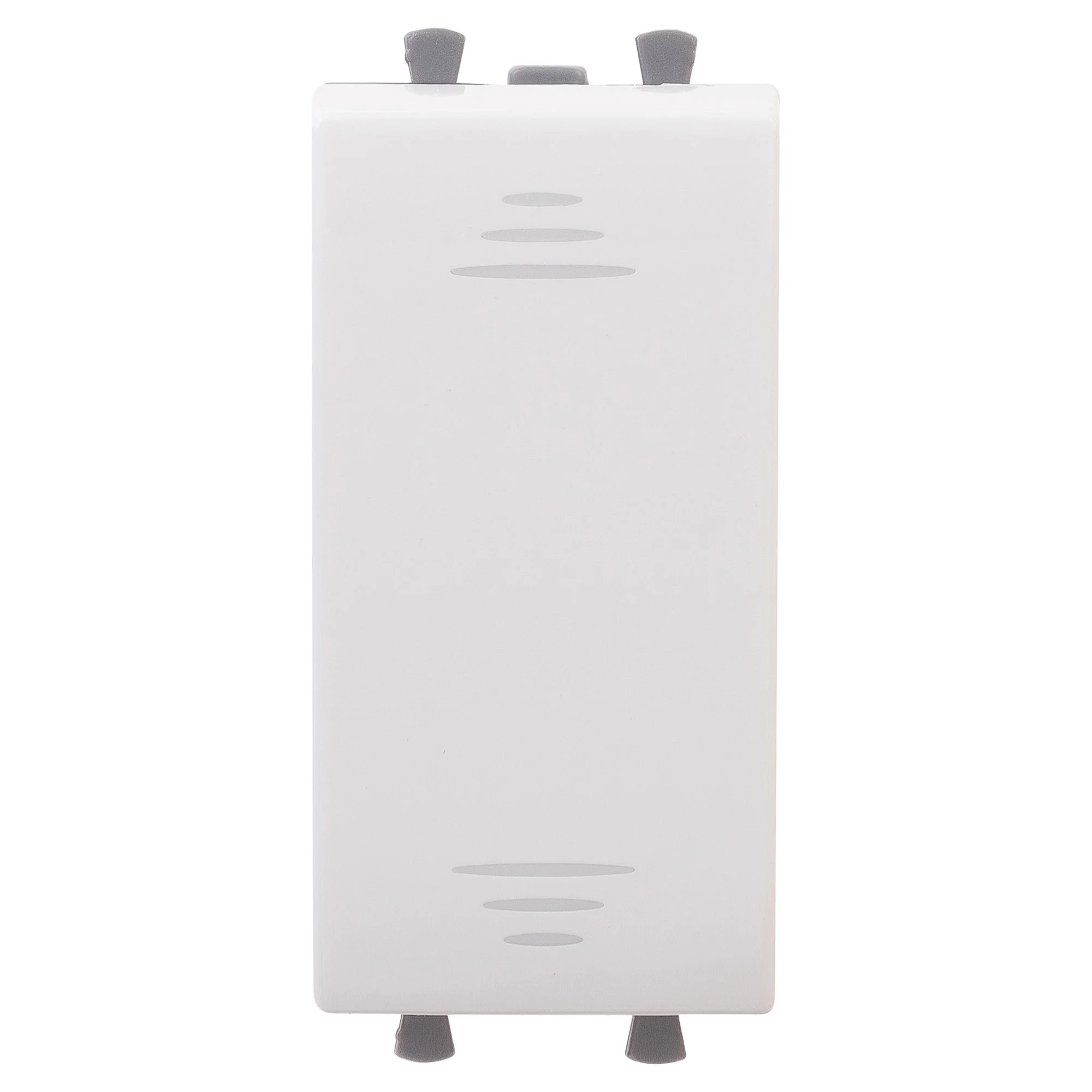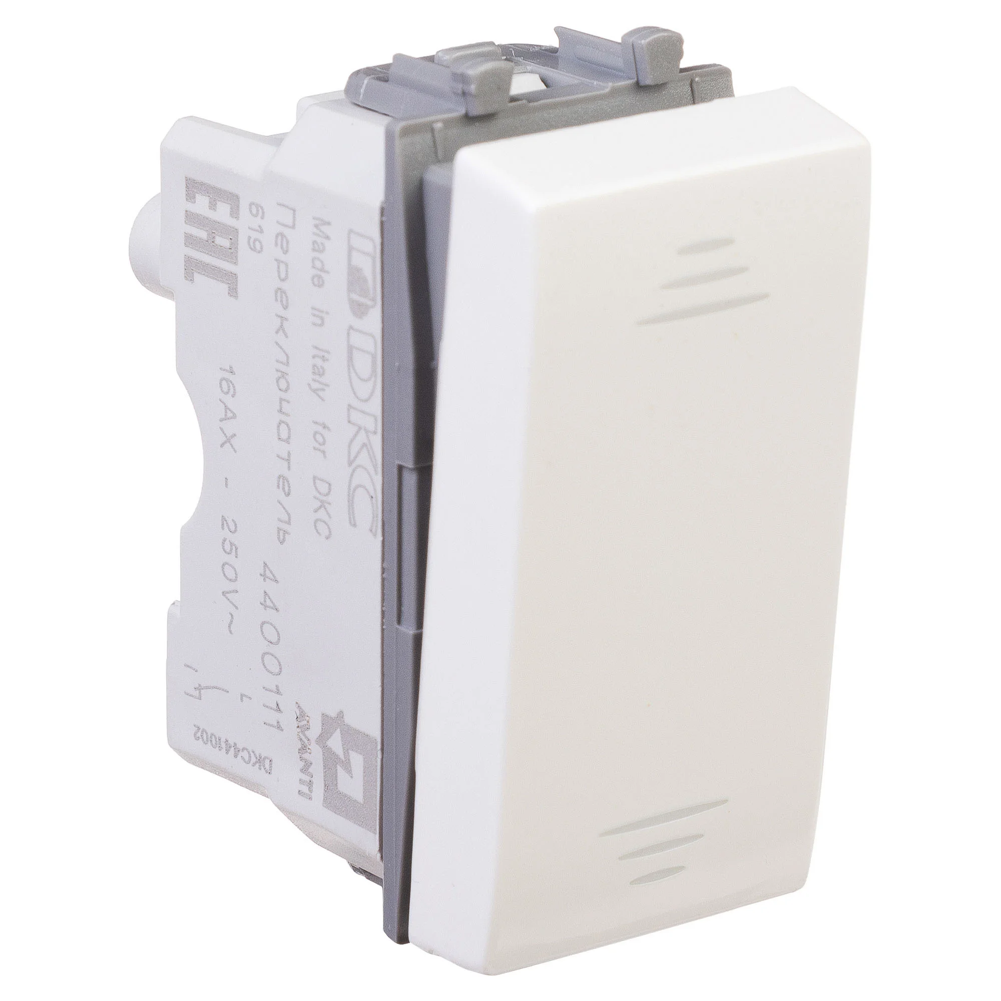 Переключатель (проходной выключатель). Назначение: включение/выключение освещения. Переключатели устанавливаются по 2 шт. на одну цепь для управления освещением из 2-х точек в коридорах, проходах, гостиничных номерах (у входной двери, изголовья кровати), проходных комнатах и т. д. Характеристики: номинальный ток − 16 А; номинальное напряжение − 250 B. Кол-во модулей: 2. Цвет: белый