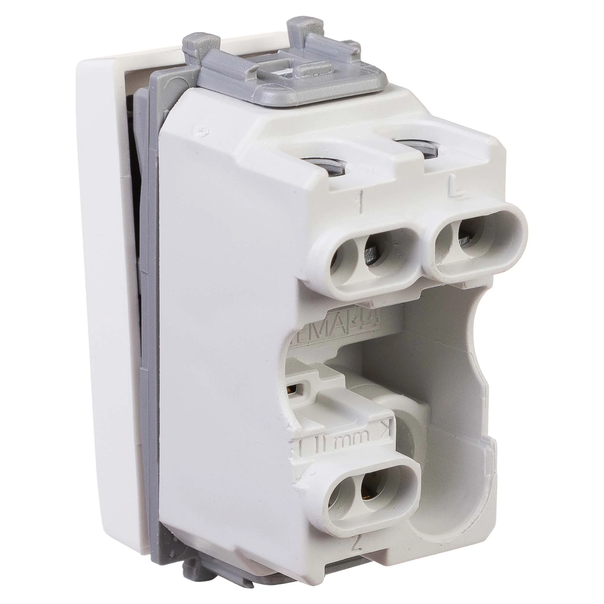 Выключатель Systeme Electric (ранее Schneider Electric) BLANCA (молочный, открытой установки) одноклавишный предназначен для сетей до 250В, на ток до 6А. Подсветка делает его легко находимым в отсутствие освещения. Выключатель подходит для небольших светильников и бра.