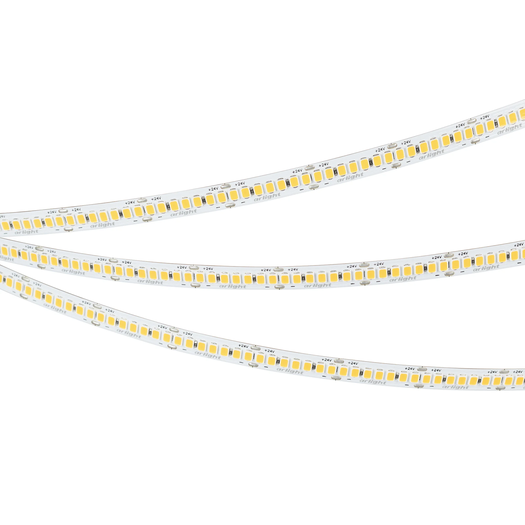 Светодиодная лента RT серии A280. Светодиоды SMD 2835, 280 шт/м, белая плата шириной 8 мм, скотч 3M. Цвет ТЕПЛЫЙ 3500K, индекс цветопередачи CRI>90, угол 120°. Питание 24 В, мощность 10 Вт/м (50 Вт на 5 м). Размеры 5000x8x1.3мм. Мин. отрезок 25 мм, 7 светодиодов. Цена за 1 м. Кратность заказа поставщику: 5 м.