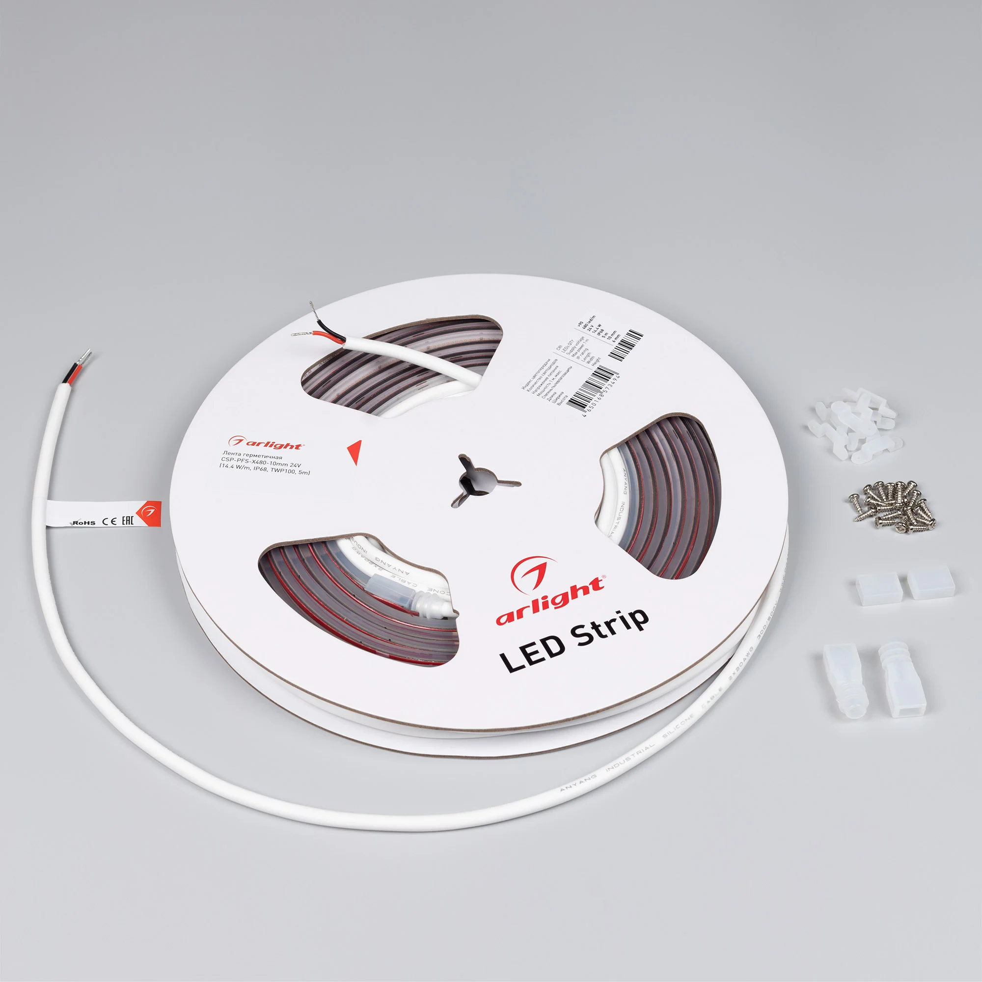 Светодиодная герметичная лента CSP сплошной засветки без видимых светодиодов серии X480, IP68 (PFS — полная силиконовая экструзия). Светодиоды CSP, 480 шт/м, белая плата шириной 8 мм, скотч 3M. Цвет БЕЛЫЙ 6000K, индекс цветопередачи CRI>90, угол 160°. Питание 24 В, мощность 14.4 Вт/м (72 Вт на 5 м). Размеры 5000х10х6 мм. Мин. отрезок 50 мм. Цена […]