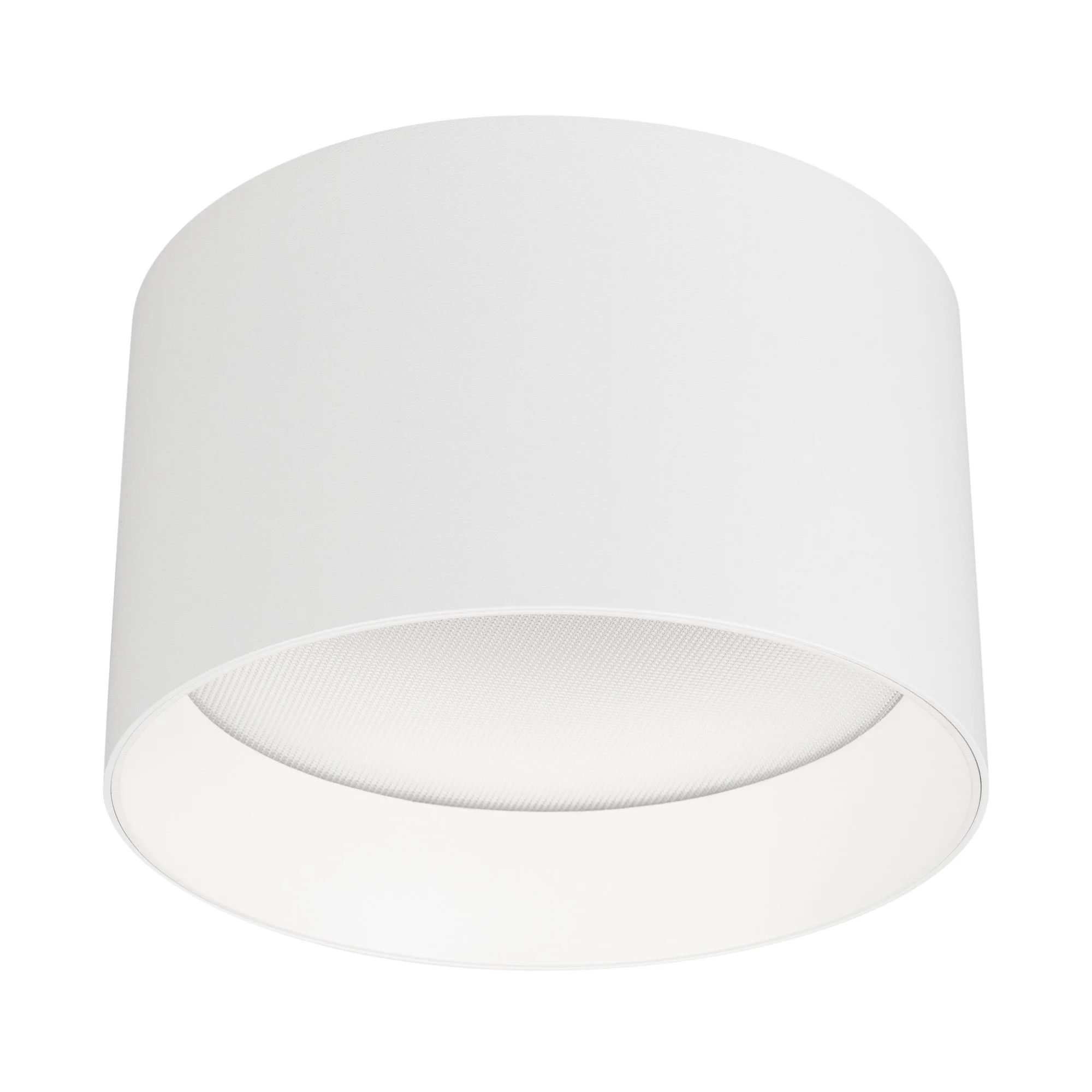 Накладной светильник. Мощность 15 Вт, св. поток 1100-1160 лм, 80-85 лм/Вт, теплый 2700 K, теплый 3300K, дневной 4000K (переключается), CRI>90, угол 80°, напряжение питания 230 В. Белый круглый корпус из алюминия, экран PC, степень защиты IP54. Размер: диаметр 140 мм, высота 85 мм. Монтаж накладной. Драйвер 26-42 В, 350 мА, пульсация <2%.