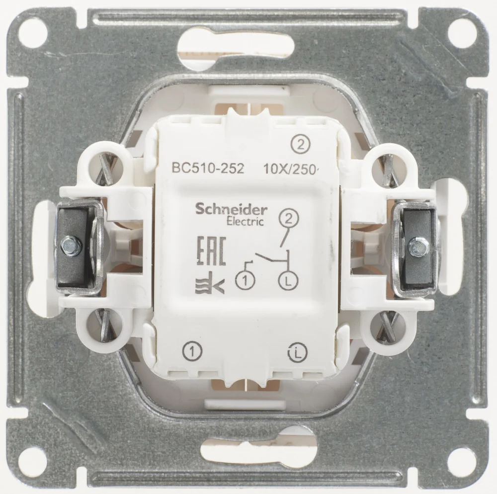 Механизм Systeme Electric (ранее Schneider Electric) W59 (цвет слоновая кость) переключателя 1-клавишного подходит для сетей 250 В, на ток до 10 А. — Переключатель позволяет управлять одним источником света из двух точек. — Серебряные контактные группы выключателей обеспечивают надёжный электрический контакт и пожаробезопасность. — Корпус изделия выполнен из высококачественного ABS-пластика.
