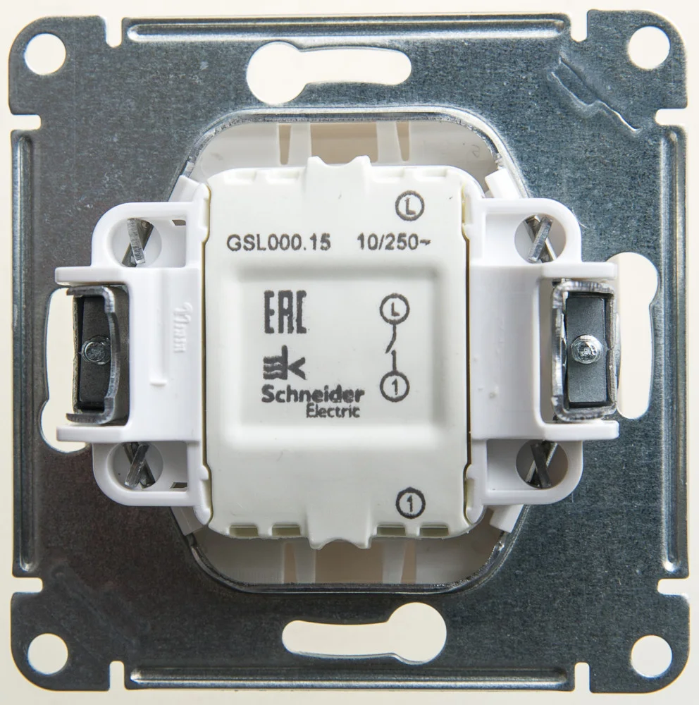 Механизм Systeme Electric (ранее Schneider Electric) серии Glossa (цвет перламутр) выключателя 1-клавишного с самовозвратом подходит для сетей 250 В, на ток 10 А. — Выполнен из материала PС+ASA, стойкого к УФ-излучению и появлению царапин. — Эргономичные клеммы расположены в два ряда: сверху и снизу.
