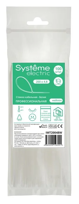 Кабельная стяжка Systeme Electric серии MultiSet в белом цвете предназначена для соединения кабелей и поводов в жгуты и их крепления к элементам строительных конструкций и кабельных лотков. — Широко применяются для организации кабельных трасс в щитовом оборудовании. — Температура эксплуатации: -40…+85°С — поставляется упаковками по 100 штук в пакете с ЗИП-замком и имеет длину 250 […]