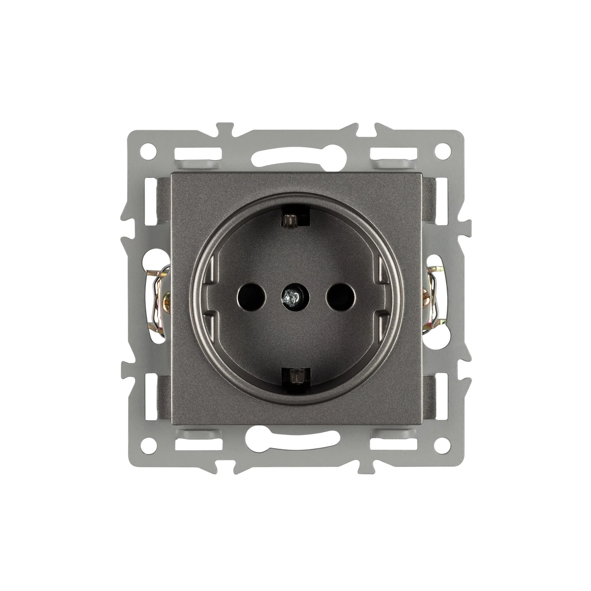 Механизм розетки с заземлением 1 пост, с суппортом из алюминия. Цвет — серый. Степень пылевлагозащиты — IP20. Устанавливается в стандартный круглый подрозетник 220V (Арт.044895). Рабочее напряжение 110-250V. Макс. ток нагрузки 16А. Габаритные размеры: длина 74 мм, ширина 74 мм, высота 37 мм. Гарантийный срок 10 лет.