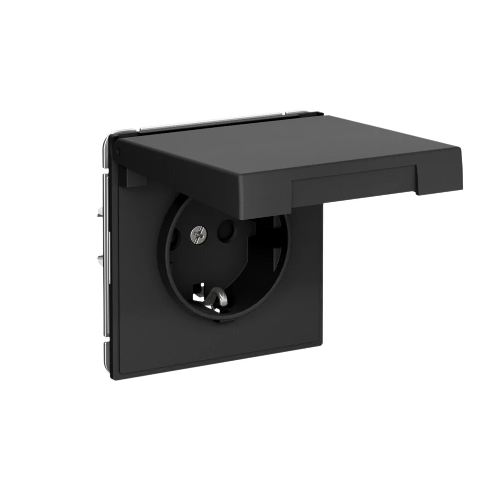 Systeme Electric AtlasDesign Карбон Розетка с заземл. со шторк. с крышкой, 16А,IP20,мех., быстрозажим. клем.