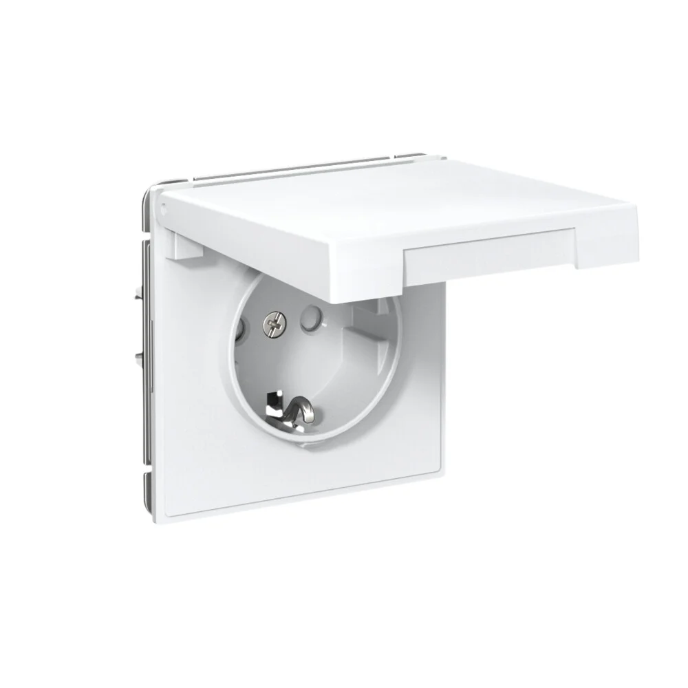 Systeme Electric AtlasDesign Белый Розетка с заземл. со шторк. с крышкой, 16А,IP20, мех., быстрозажим. клем.