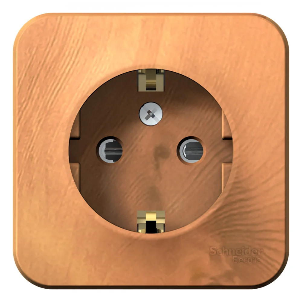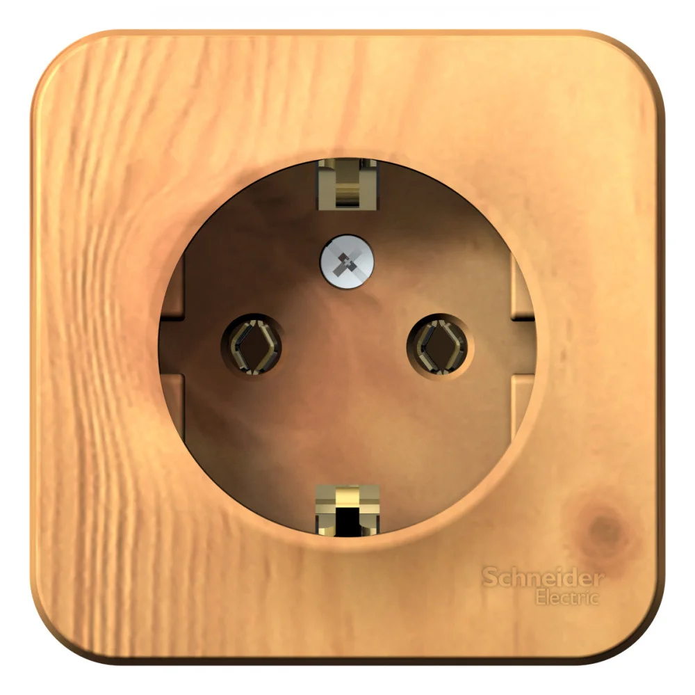 Розетка Systeme Electric (ранее Schneider Electric) BLANCA (ясень, открытой установки) одноместная с заземлением, без шторок, предназначена для сетей до 250В, на ток до 16А. Заземление обеспечивает безопасность при косвенном прикосновении. Изделия цвета Ясень обладают уникальным рисунком, напоминающим древесный сруб. Она изготовлена из ABS-пластика, проста в установке и удобна в применении.