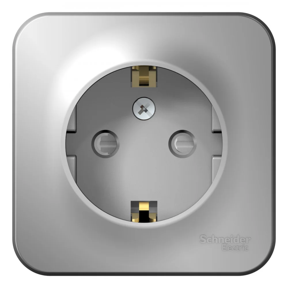 Розетка Systeme Electric (ранее Schneider Electric) BLANCA (алюминий, открытой установки) одноместная с заземлением, шторками и изолирующей пластиной предназначена для сетей до 250В, на ток до 16А. Шторки открываются только при одновременном равномерном давлении в оба отверстия и препятствуют проникновению посторонних предметов. Они обеспечат дополнительную безопасность в доме, где есть дети.