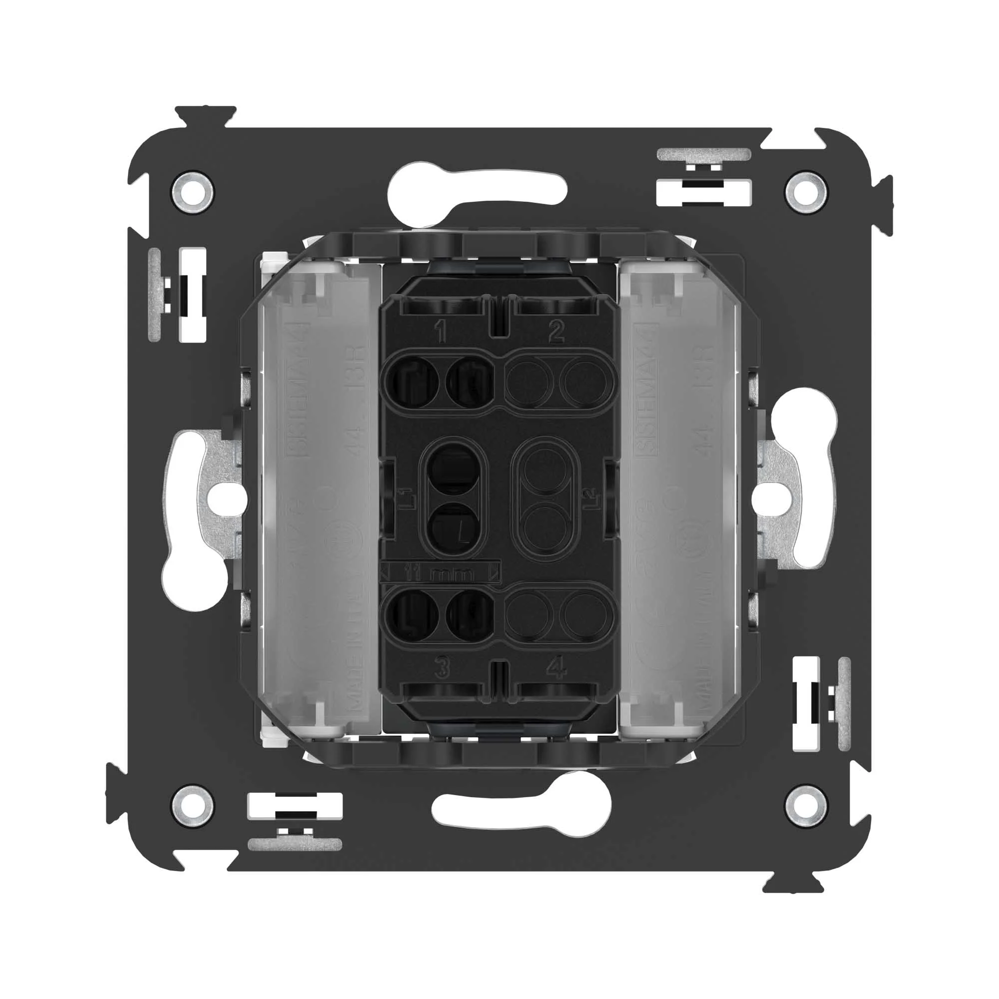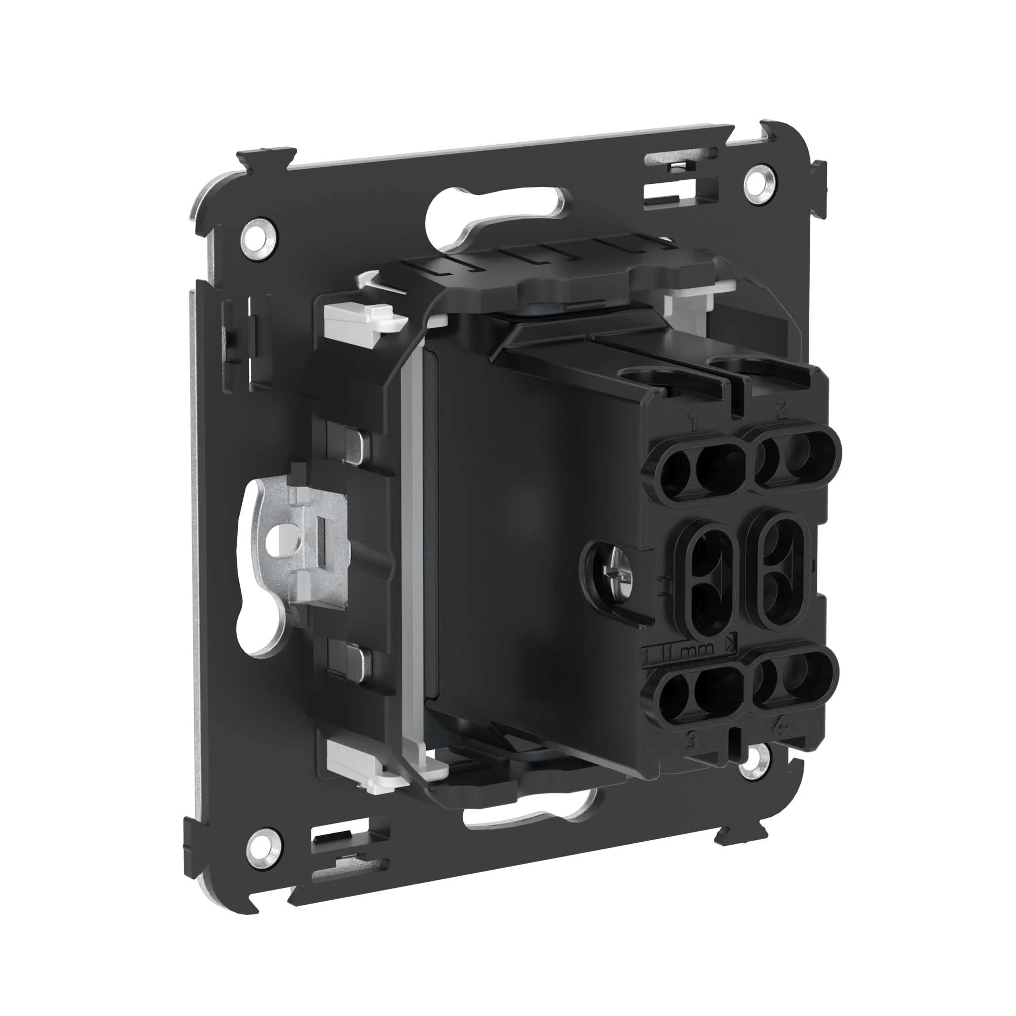 Механизм управления рольставнями. Назначение: предназначеа для управления приводом рольставней и штор. Характеристики: номинальное напряжение – 230 В; диаметр отверстий для ввода кабелей – 3 мм; винтовые зажимы; шаблон для зачистки кабеля – 11 мм. Механизм устанавливается в подрозеточные коробки глубиной не менее 45 мм (код 59301) при помощи каркаса с лапками (код 4400802) и саморезов. […]