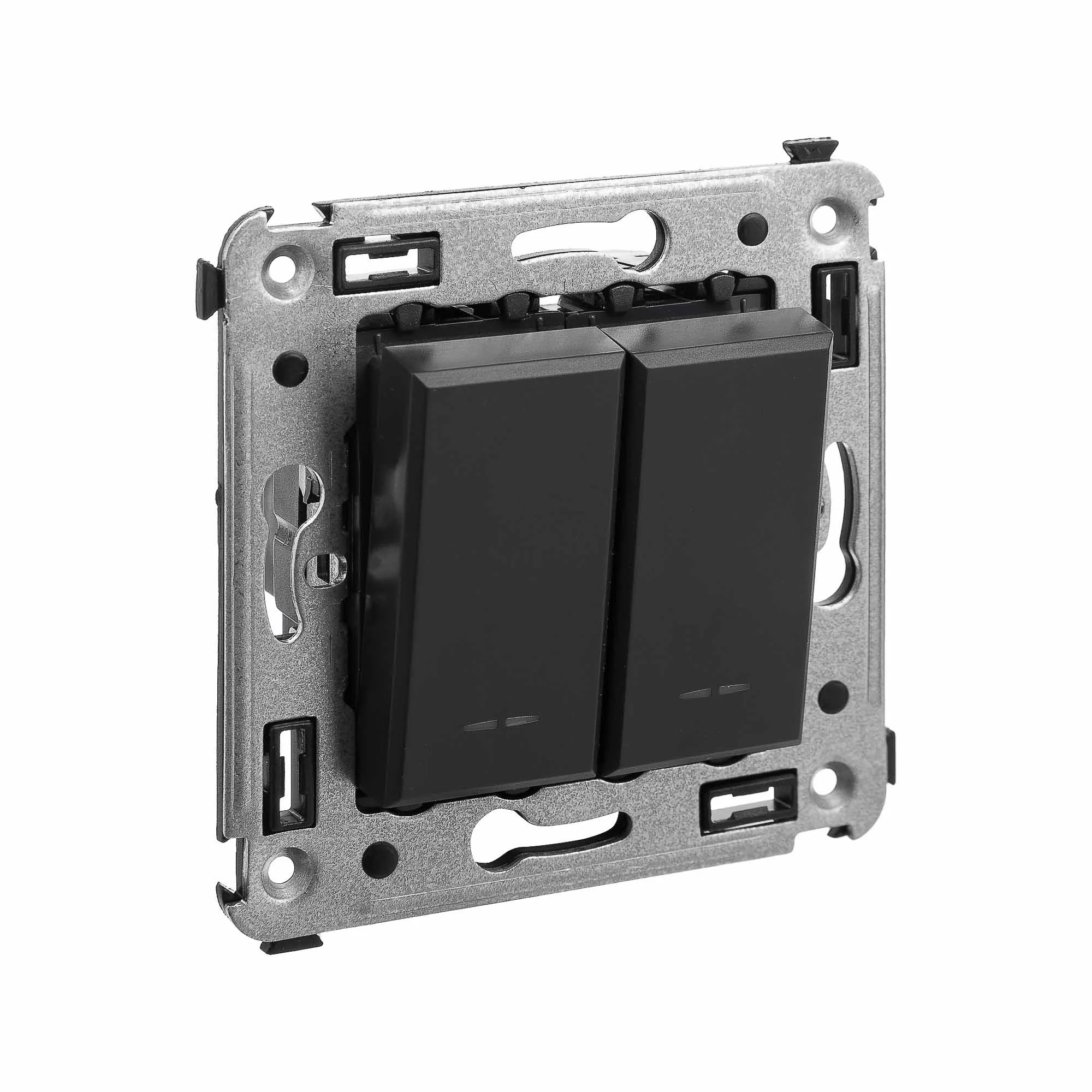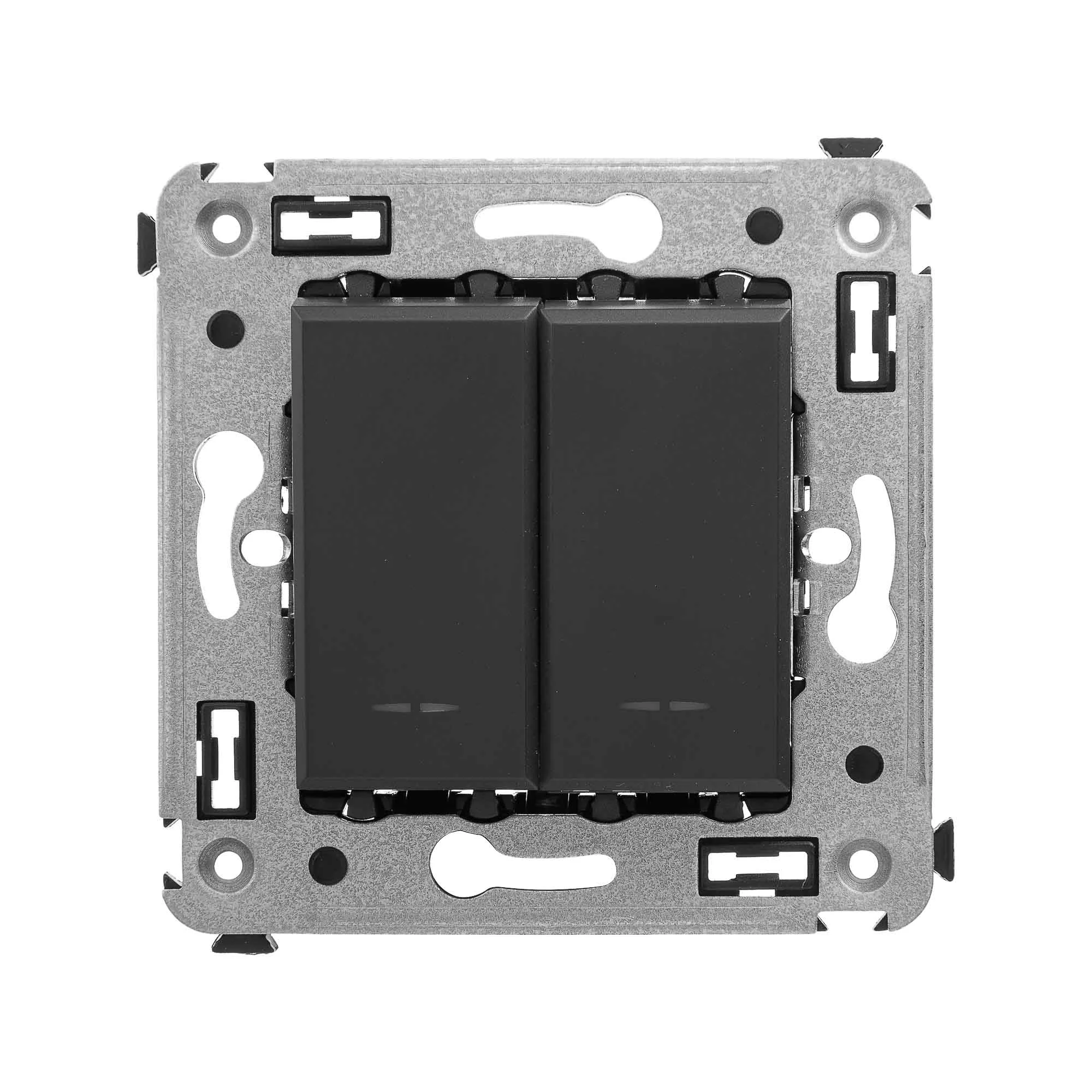 Выключатель Systeme Electric (ранее Schneider Electric) BLANCA (антрацит, открытой установки) двухклавишный предназначен для сетей до 250В, на ток до 10А. Подсветка делает его легко находимым в отсутствие освещения. Двухклавишный выключатель позволяет управлять двумя источниками света из одной точки.