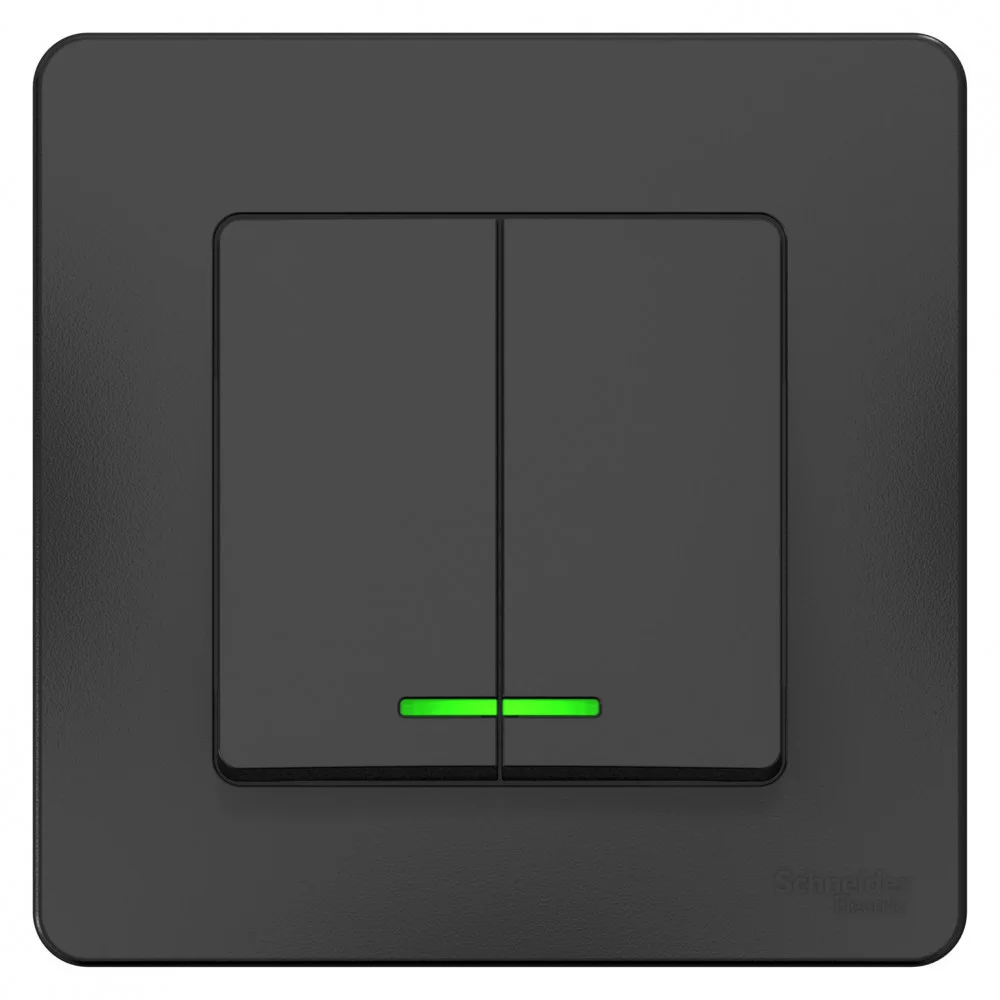 Выключатель Systeme Electric (ранее Schneider Electric) BLANCA (антрацит, открытой установки) с изолирующей пластиной двухклавишный предназначен для сетей до 250В, на ток до 10А. Подсветка делает его легко находимым в отсутствие освещения. Двухклавишный выключатель позволяет управлять двумя источниками света из одной точки.