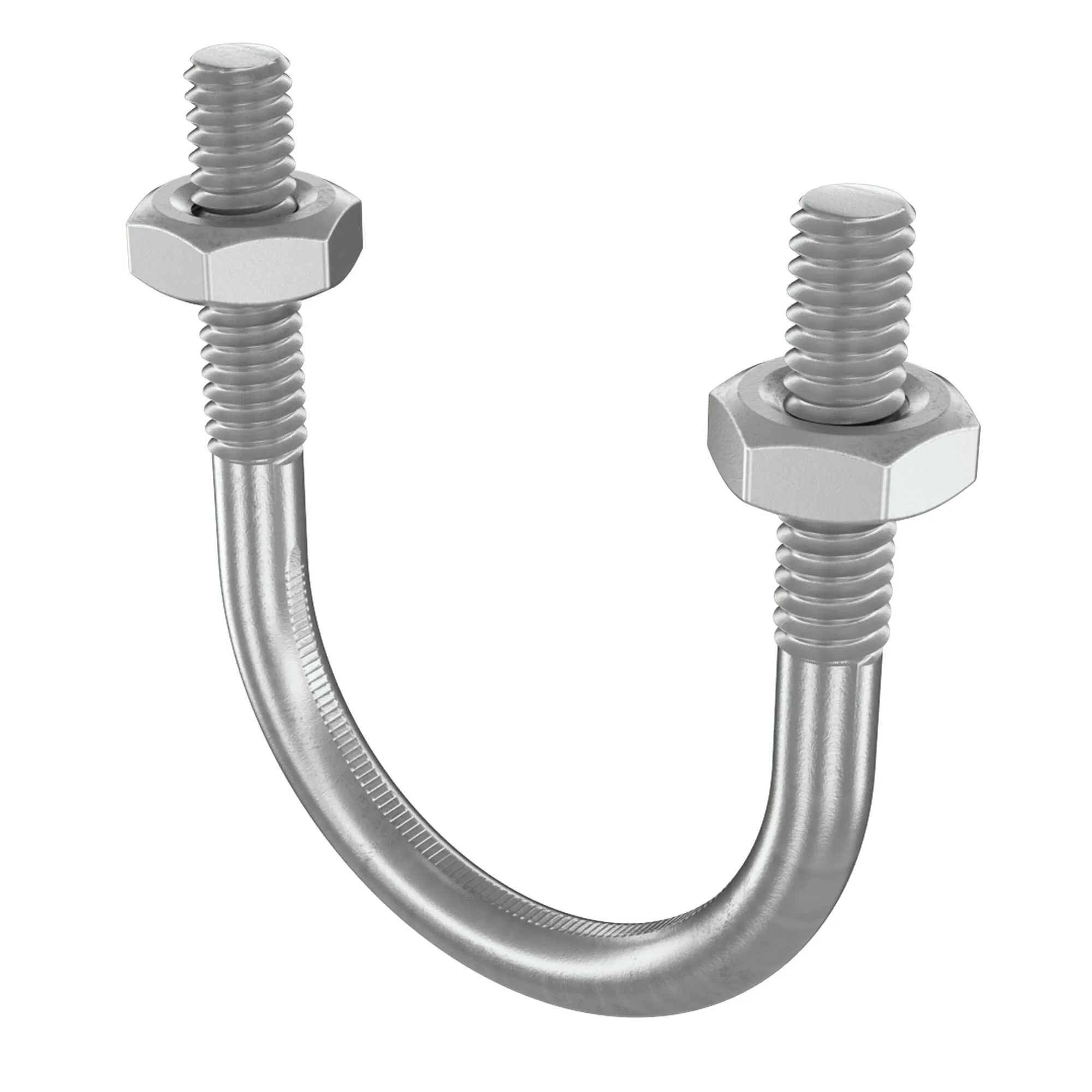 Скоба монтажная U-образная с резьбой М8 с гайками для труб d 1 1/2″. Применяется для крепления труб различного назначения к профилям и консолям. Резьба соединительной гайки М8. Межосевое расстояние 59 мм.