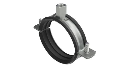 Хомут для высоких нагрузок BHH с изоляцией с гайкой М12 для труб d 1 1/2″. Применяется для монтажа труб системы водоснабжения, водоотведения, отопления с высокми нагрузками. Легкая регулировка хомута по внешнему диаметру трубы за счет наличия двух винтов.