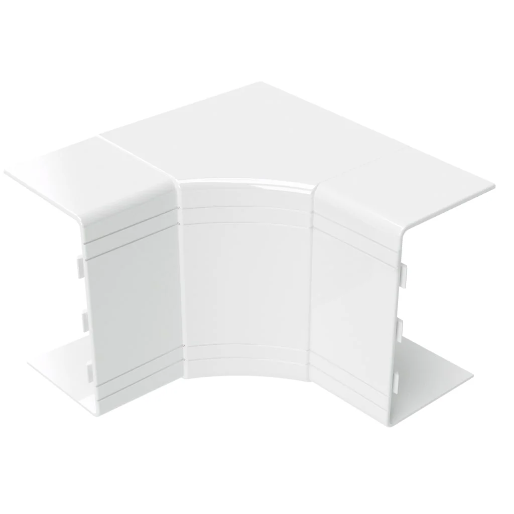 Угол плоский, NPAN. Назначение: эстетическое оформление мест стыковки кабельных коробов при организации поворота трассы на 90° (L-образный поворот). Характеристики: материал — АБС-пластик; цвет белый. Размер 120х60 мм