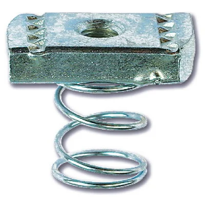 Гайка с пружиной для подвешивания профиля используется для крепления консолей к С-образным профилям, к траверсам и подвесам на их основе. Нержавеющая сталь AISI 304 отличается устойчивостью к коррозии и химическим воздействиям, позволяет применять гайки в агрессивных средах на предприятиях пищевой, металлургической, фармацевтической отрасли. Гайка применяется с профилем типоразмера 41х41 мм.
