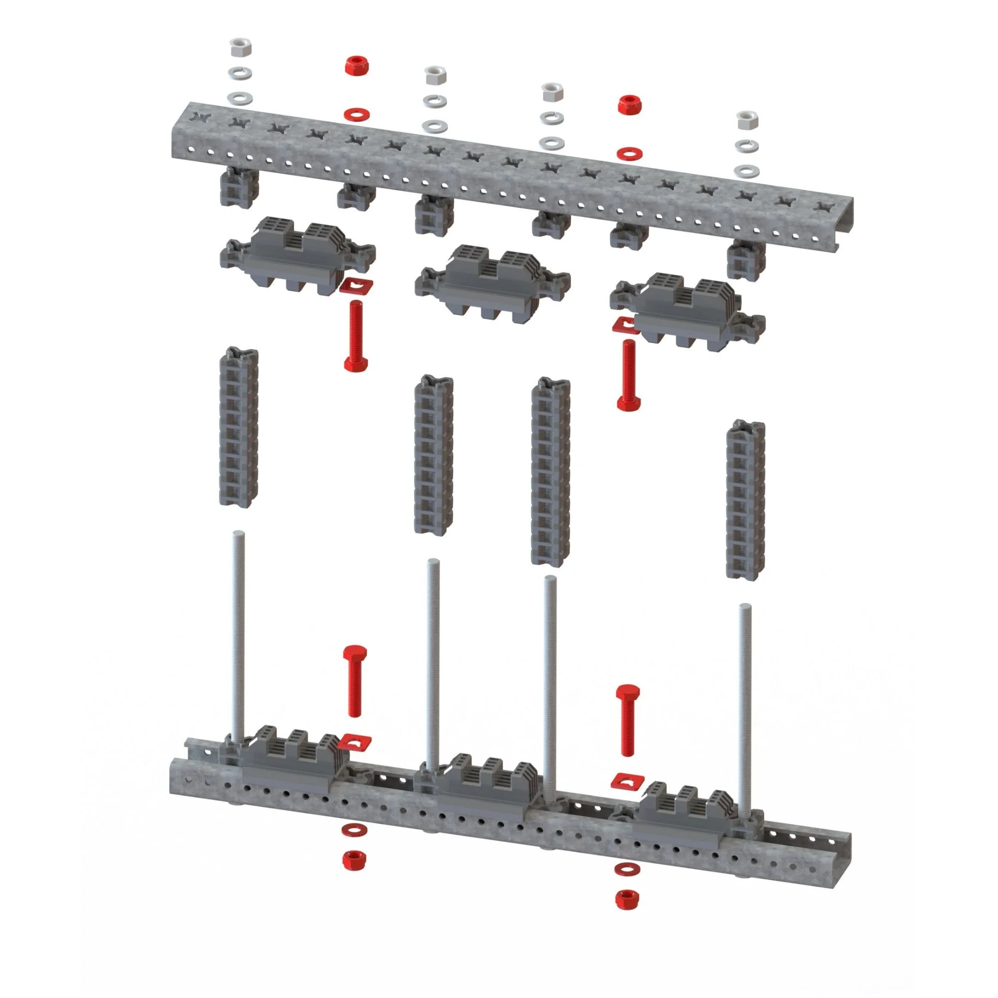 Комплект изоляторов предназначен для организации главной шинной системы. Подходит для установки 2 или 3 токоведущих шин прямоугольного сечения толщиной 10 мм для 3-полюсной шинной системы.