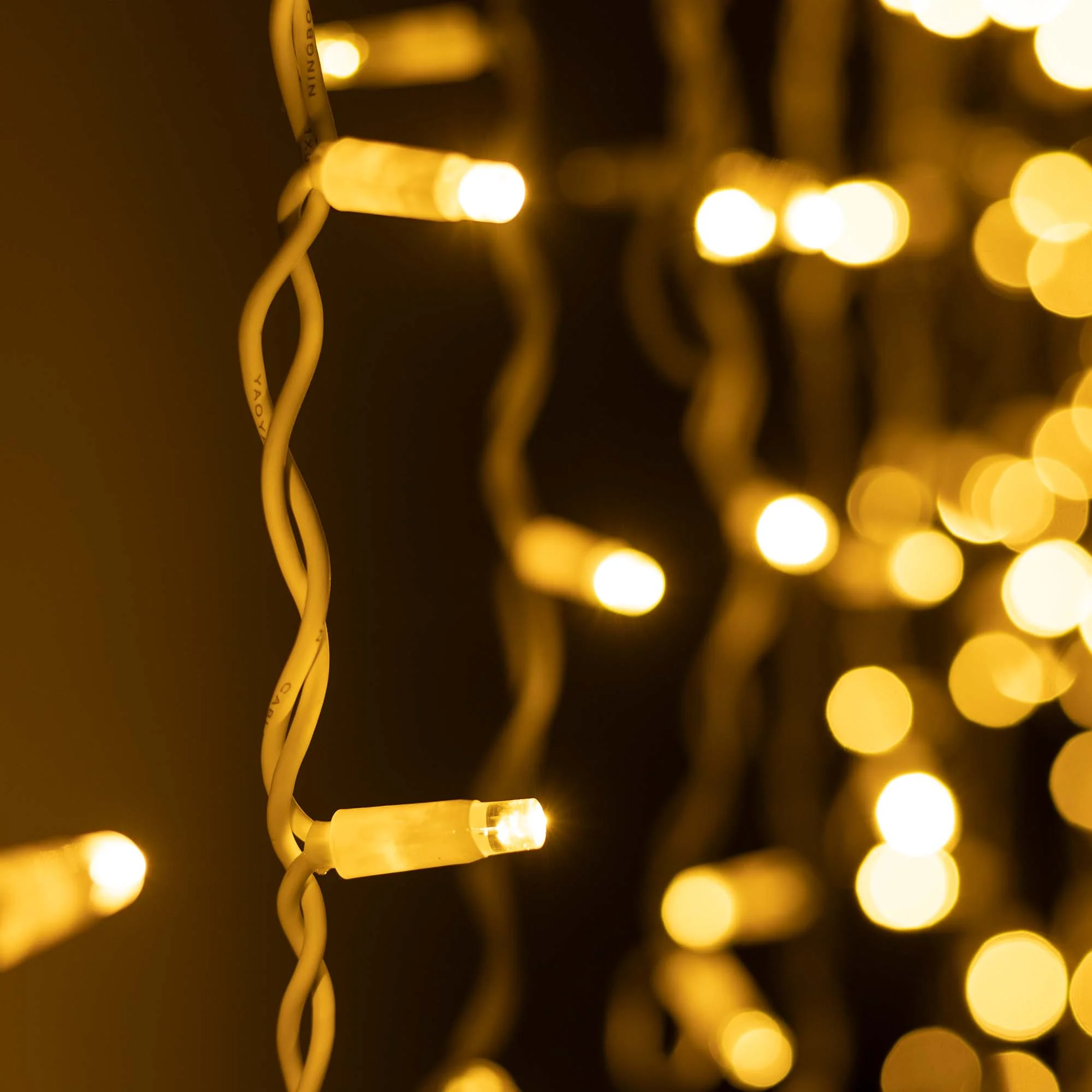 Светодиодная бахрома Classic. Размер 5600 мм (длина 5600 мм, по длине 48 нитей высотой 200/900 мм). Количество светодиодов 240 шт размером 7 мм. Цвет свечения ТЕПЛЫЙ БЕЛЫЙ (3000 К). Эффект медленного мерцания каждого светодиода с резким световым рисунком (прозрачная вогнутая линза). Провод прозрачный, ПВХ. Питание 230 В, Мощность 6 Вт, защита IP65, применение на улице […]