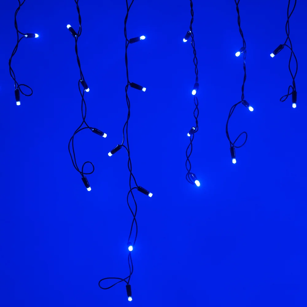 Светодиодные шарики Classic. Размер 10000 мм. Цвет свечения СИНИЙ, постоянное свечение. 100 шариков со светодиодом внутри размером 17.5 мм с мягким световым рисунком (выпуклая молочно-белая линза). Провод чёрный, ПВХ. Питание 230 В, Мощность 7 Вт, защита IP65, применение в помещении и на улице под навесом. Аксессуары для подключения приобретаются отдельно.
