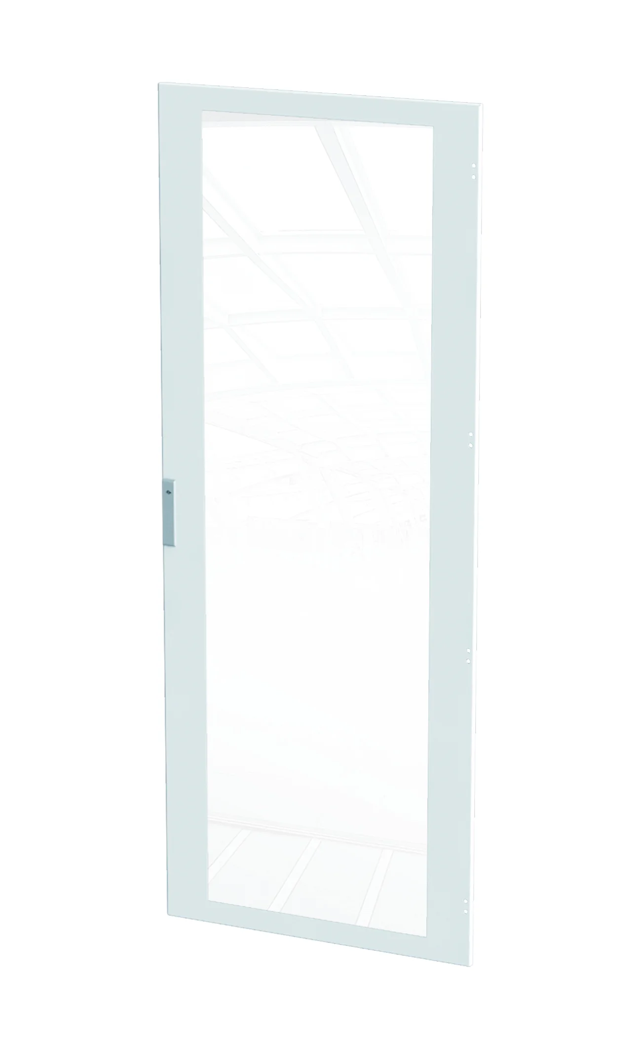 Реверсивная обзорная дверь с четырёхточечным штанговым замком и с отверстиями для крепления кабельных каналов, с углом открывания 225 гр. Закаленное стекло толщиной 4,0 мм. Предназначена для установки на фронтальную и/или тыльную часть рамы шкафов MPx. Идет в комплекте поставки стандартного шкафа MPV. Используется для компоновки шкафа индивидуальной сборки, также может быть заказана отдельной позицией.