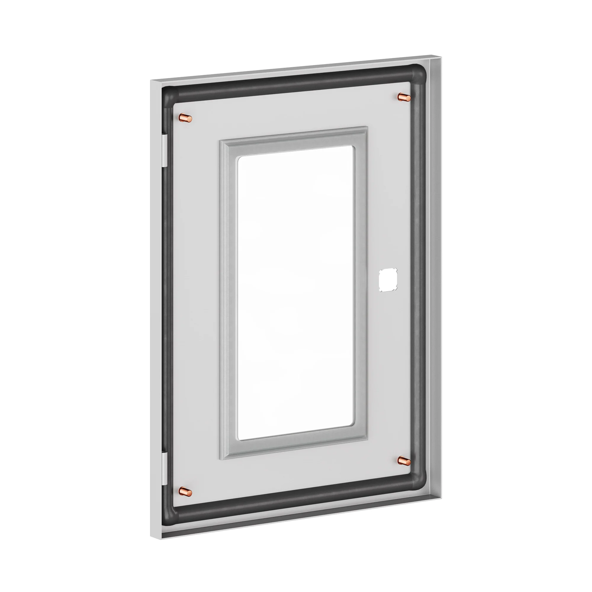 Дверь навесного корпуса STX/STEX, изготавливается из стали толщиной 1,5 мм с атмосферостойким порошковым покрытием, цвет RAL7035. Обзорное окно из безопасного закаленного стекла толщиной 5 мм. Комплект поставки: дверь реверсивная с отверстиями под 2 поворотных замка, без замков.Габариты 1000×800 (ВхШ) мм.