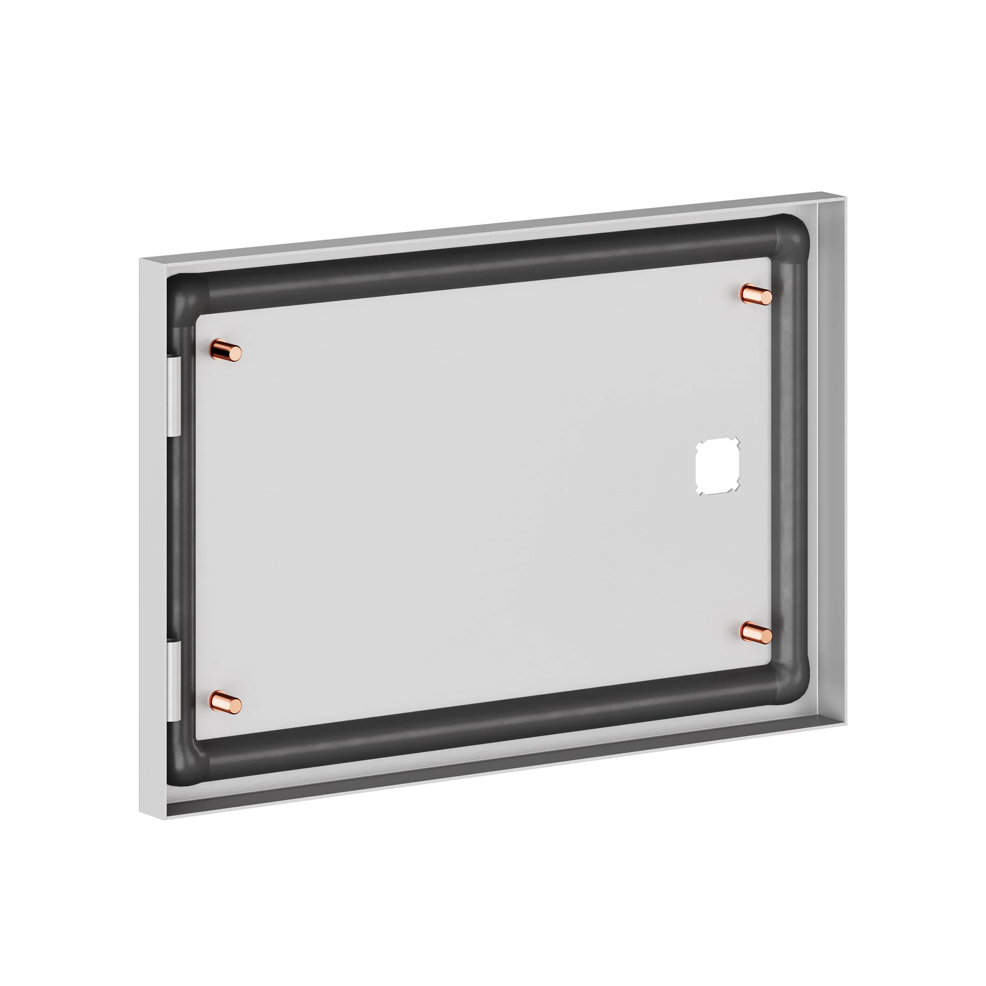 Дверь навесного корпуса ST/STE, изготавливается из стали толщиной 1,2 мм с атмосферостойким порошковым покрытием, цвет RAL7035. Комплект поставки: дверь реверсивная с отверстием под 1 поворотный замок, без замка. Габариты 300×300 (ВхШ) мм.