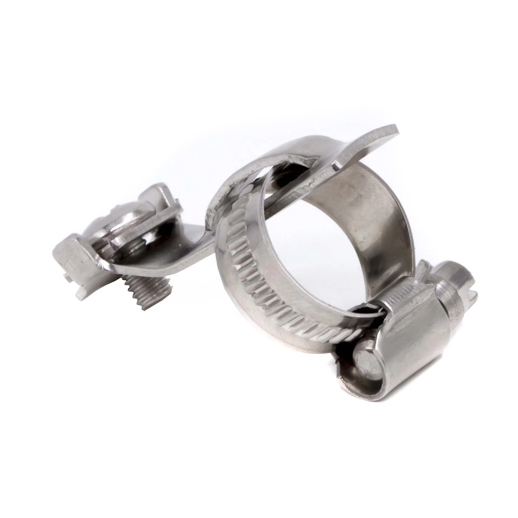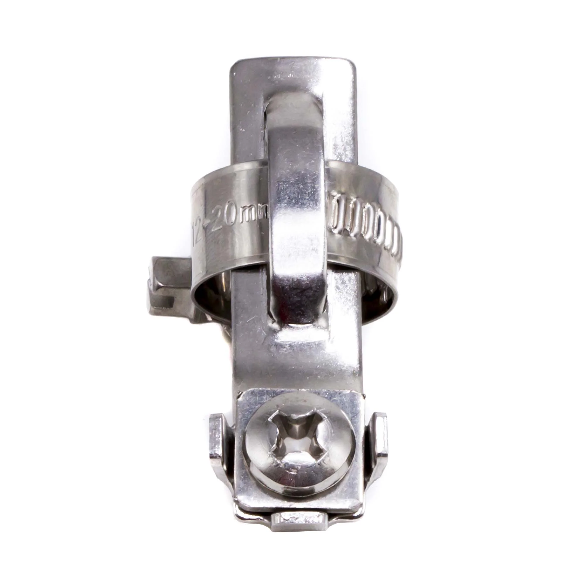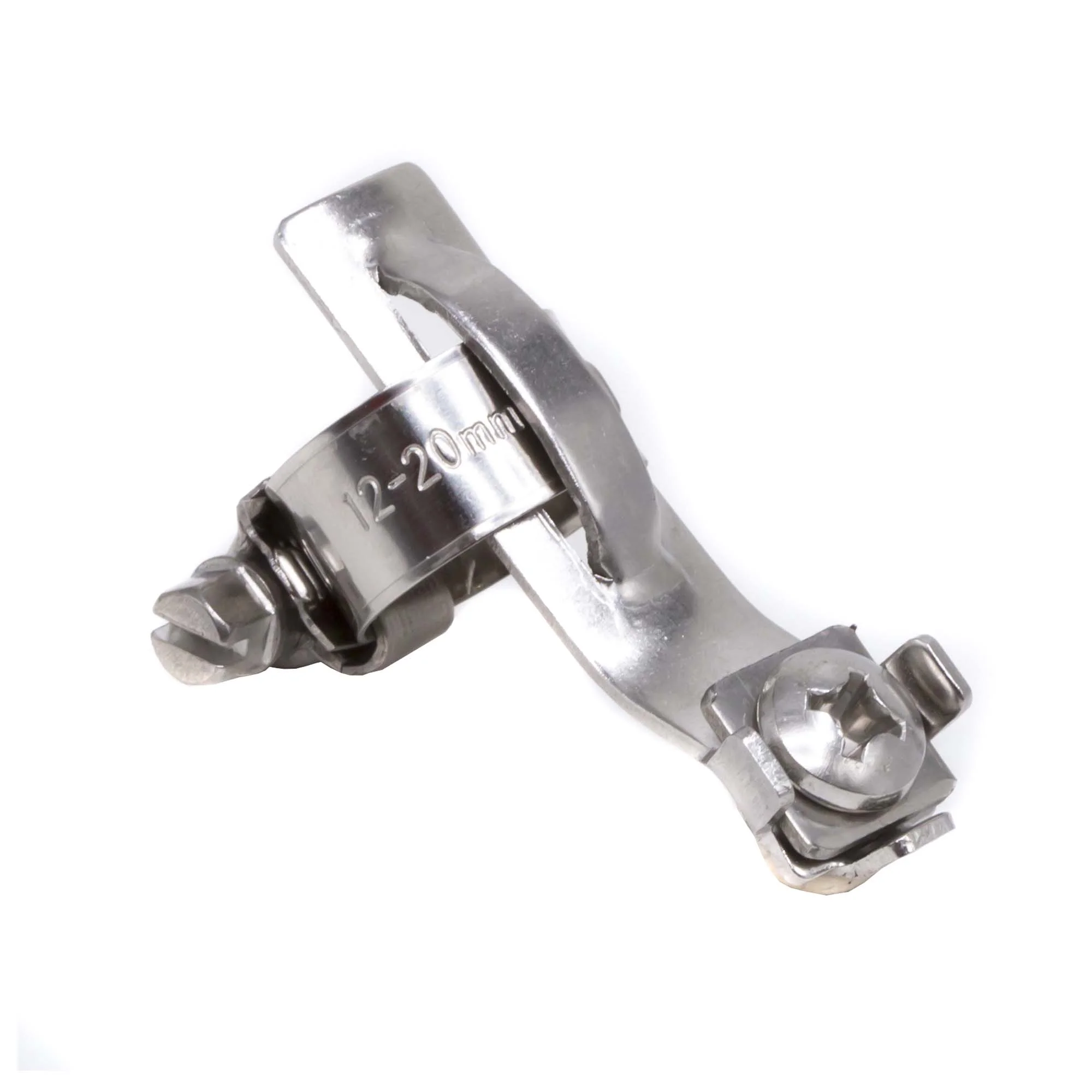 Хомут заземления используется для зануления, заземления, уравнивания потенциалов при прокладке кабеля в жестких металлических трубах и металлорукавах, обеспечивая непрерывный заземляющий контур. Материал — нержавеющая сталь SS201. Максимальное сечение провода — 6мм2. Хомут имеет механизм плавной бесступенчатой затяжки. Для труб и металлорукавов с внешним диаметром от 12 мм до 20мм.