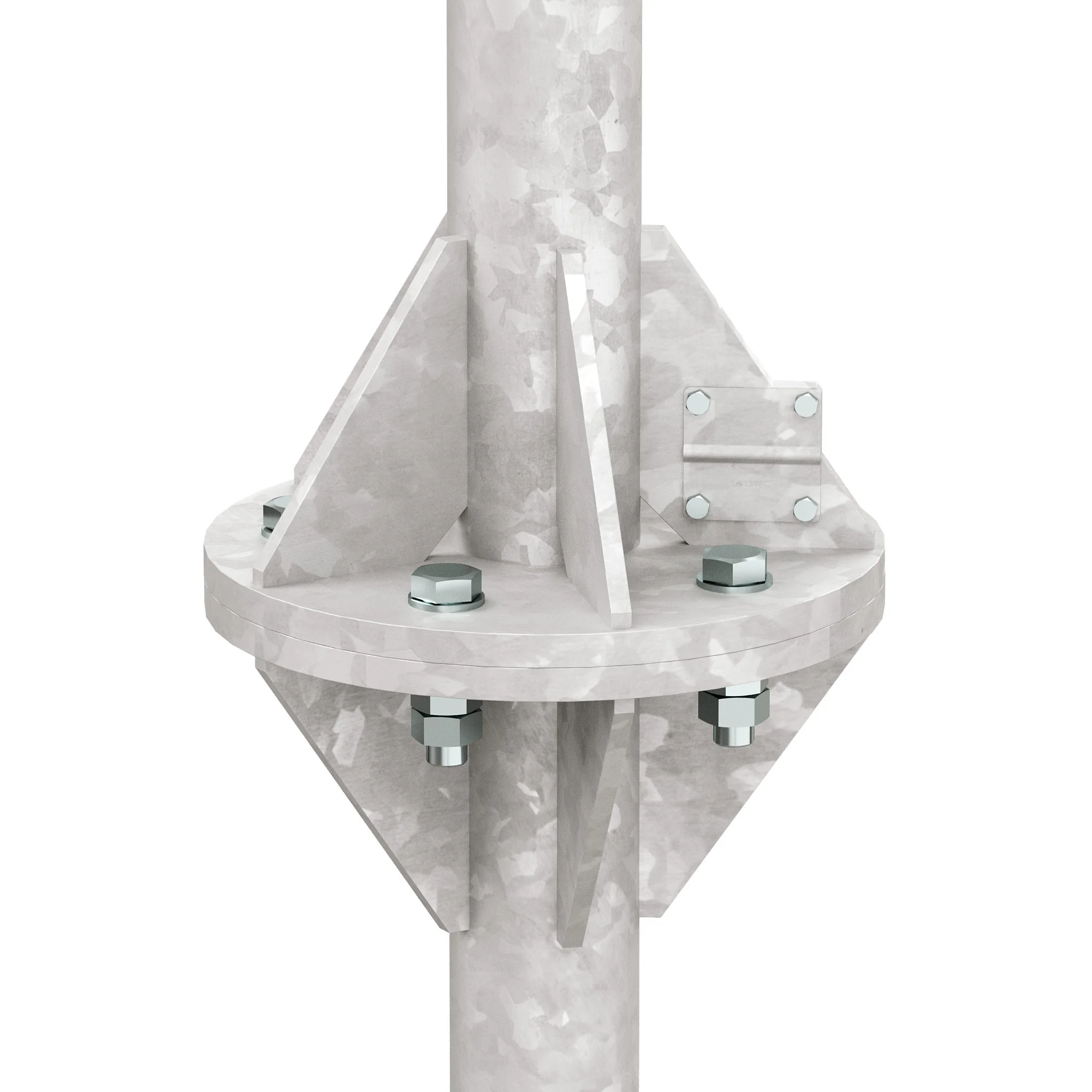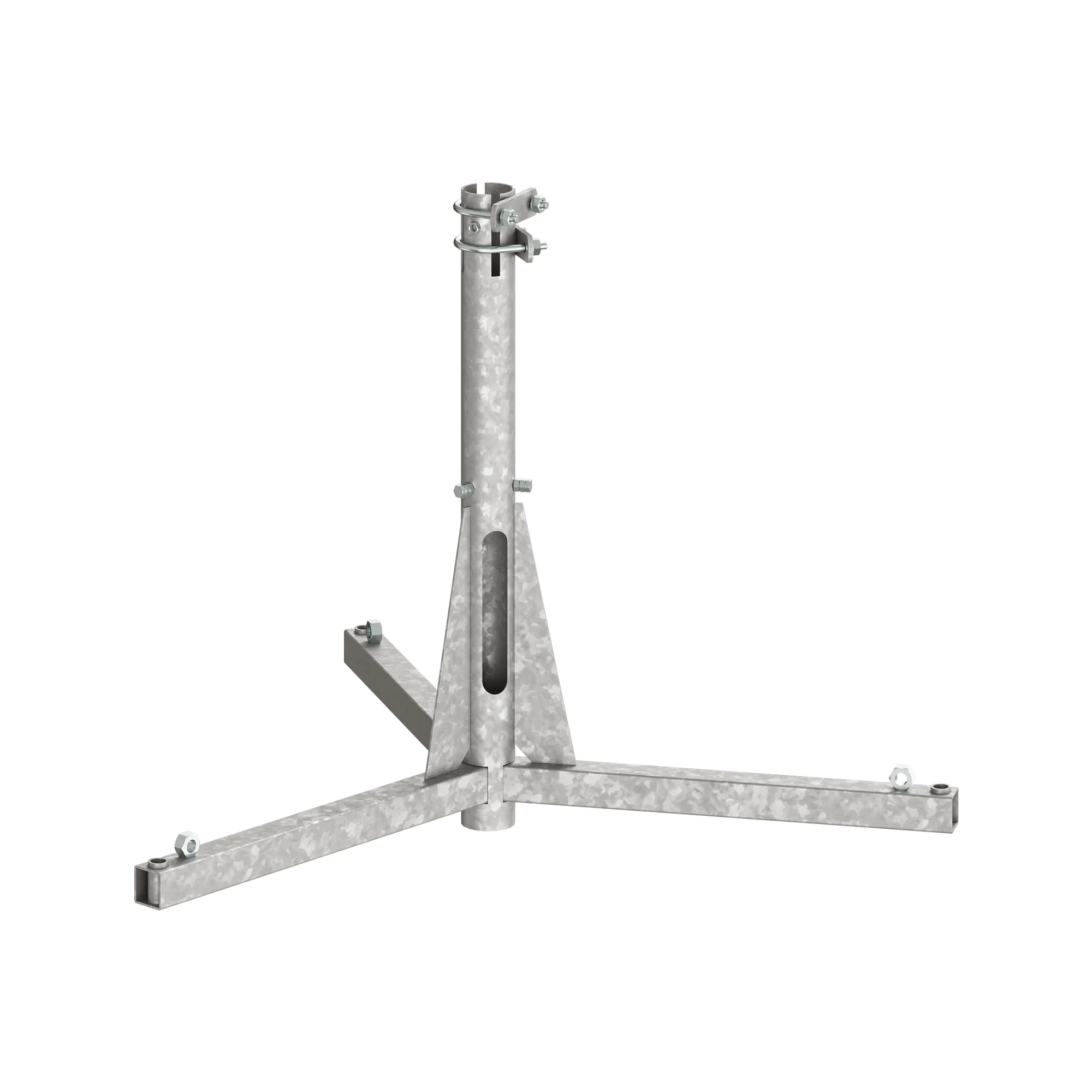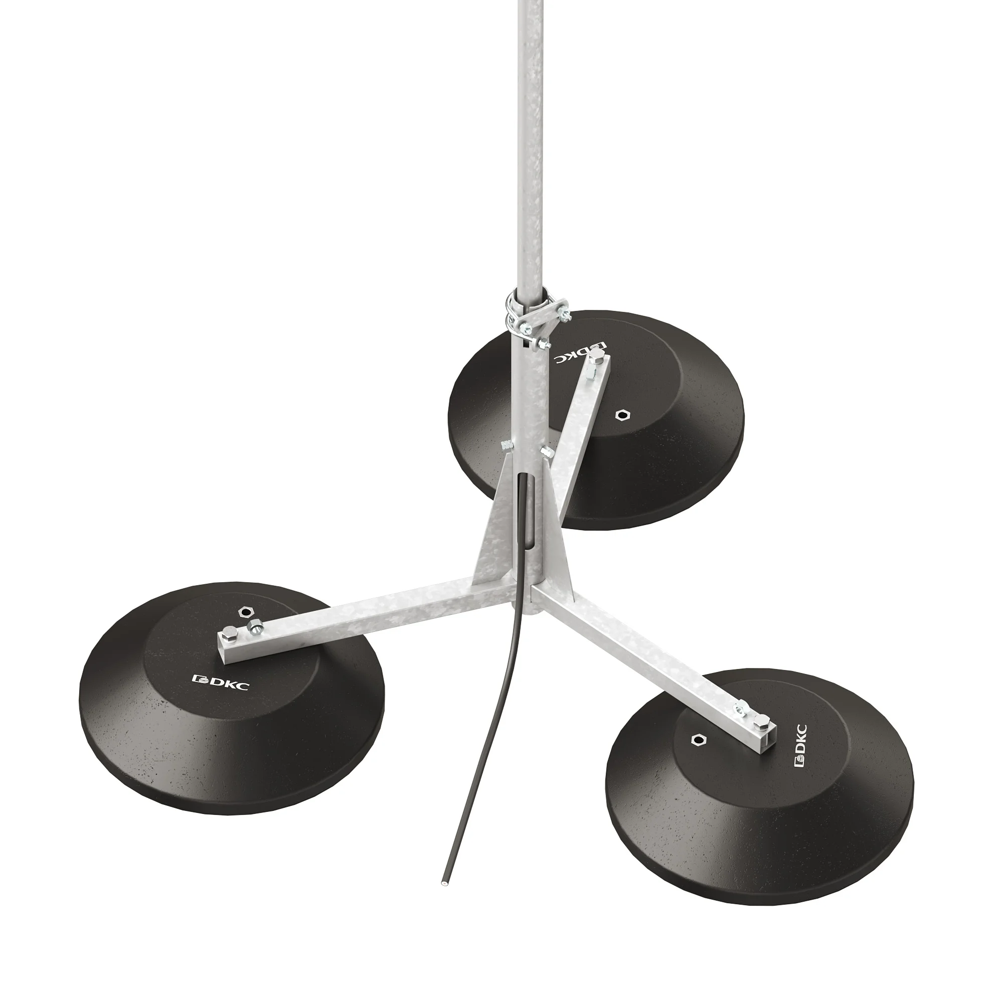 Тренога применяется для установки 3-7-метровых изолированных молниеприемных мачт на бетонных основаниях. Тренога имеет специальное отверстие для вывода изолированного токоотвода из мачты. Для предотвращения появления разности потенциалов между треногой и оборудованием на крыше треногу рекомендуется присоединить к системе уравнивания потенциалов с помощью соединителя NG6606. Материал — горячеоцинкованная сталь.