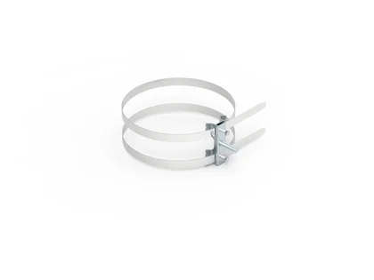 Двойной трубный хомут применяется для крепления изоляционной штанги на трубу большого диаметра с помощью монтажной ленты. Материал — нержавеющая сталь. Диапазон зажима трубы — до 150 мм.