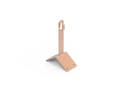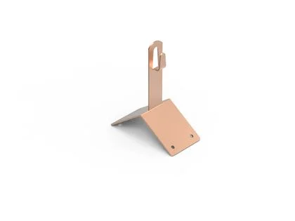 Угловой коньковый зажим используется для фиксации молниеприемной сетки на основе прутка диаметром 8-10 мм на остром коньке кровли при помощи саморезов. Проводник крепится безвинтовым зажимом при помощи плоскогубцев. Материал — медь, высота — 100 мм.