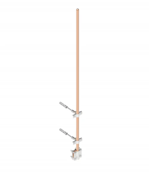 Молниеприемник с держателями устанавливается на вертикальную поверхность (например, стена, дымовая труба). В комплект молниеприемника входят два держателя с дюбелями и установочный соединитель для подключения токоотвода. Длина — 1500 мм. Материал стержня — медь, материал держателей и соединителя — нержавеющая сталь.